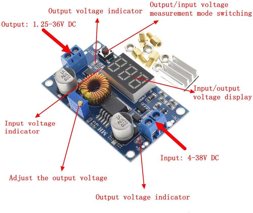 Input Voltage 4.0 ~ 38V. (Input voltage must be higher than the output voltage of 1.5v or more)