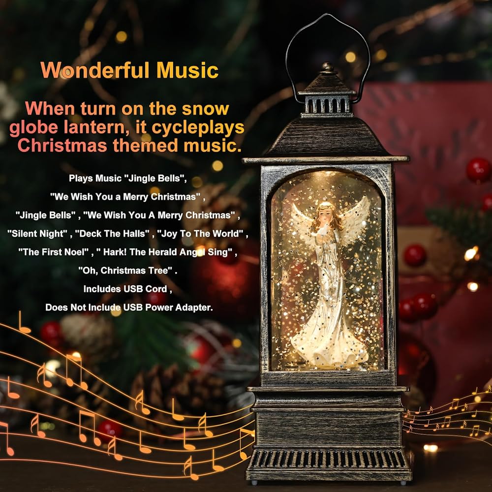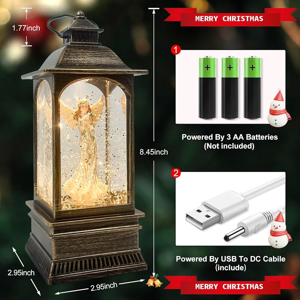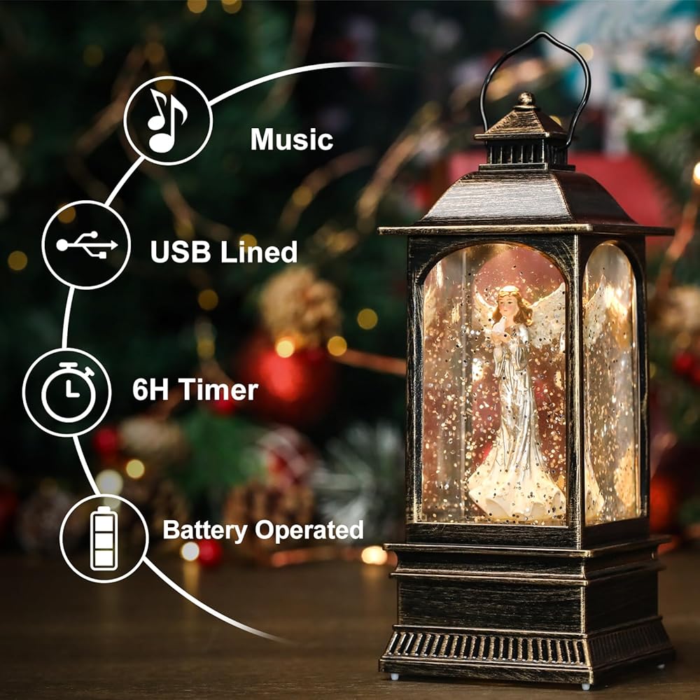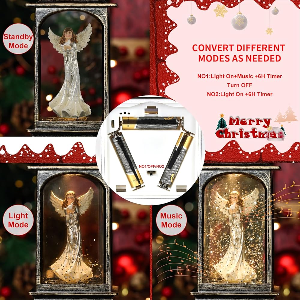 عيد الميلاد الملاك كرات الثلج الموسيقية التي تضيء، فوانيس المياه عيد الميلاد الزخرفية، كرة ثلجية صغيرة في الأماكن المغلقة، الفوانيس التي تعمل بالبطارية، هدايا الملاك للنساء أو الفتيات، ديكور تماثيل الملائكة