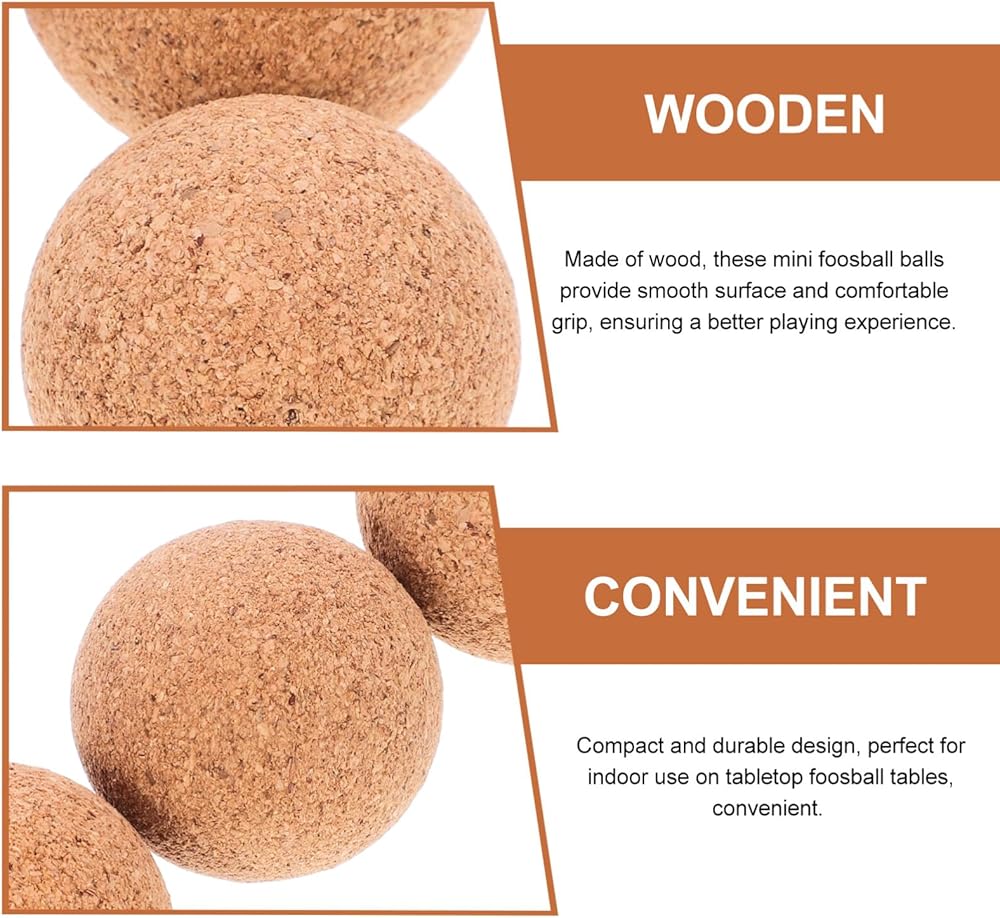 The tabletop foosball cork balls are accessories for indoor foosball tables. Made of wood, these mini foosball balls provide smooth surface and comfortable grip, ensuring a better playing experience. Durable and compact, these mini foosball balls are ideal for home or for playing during school breaks.