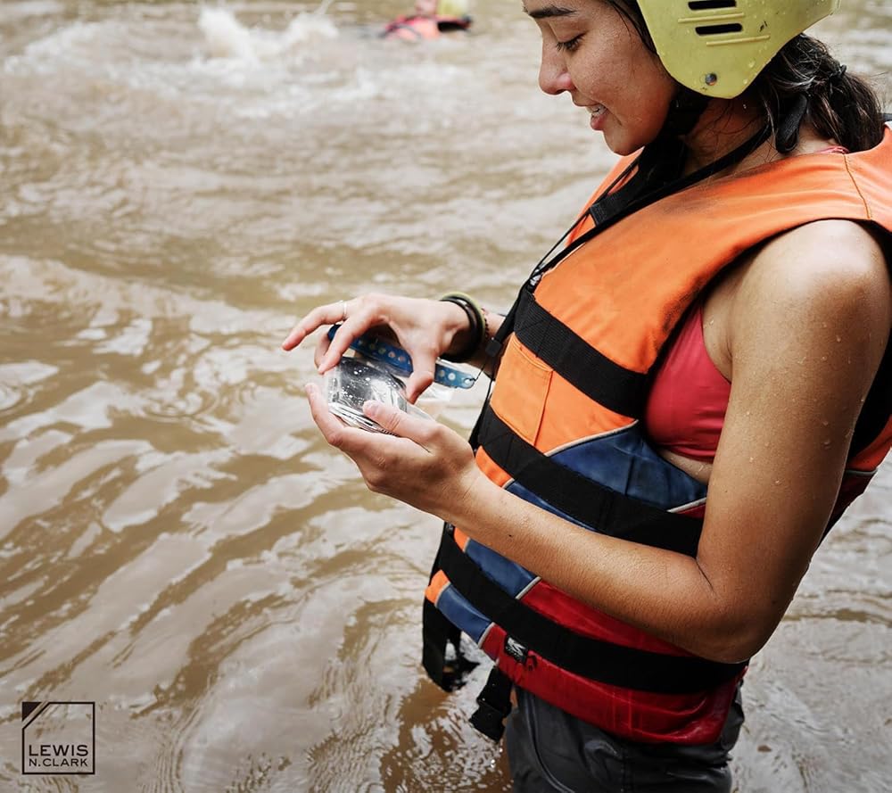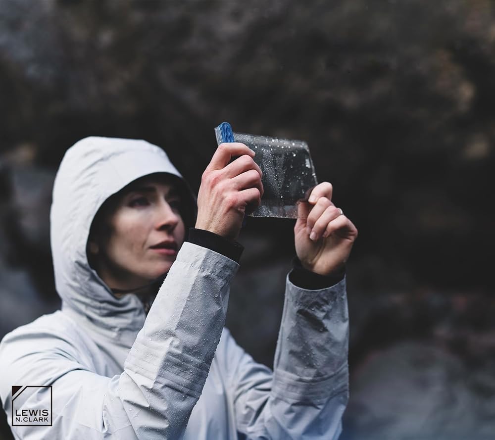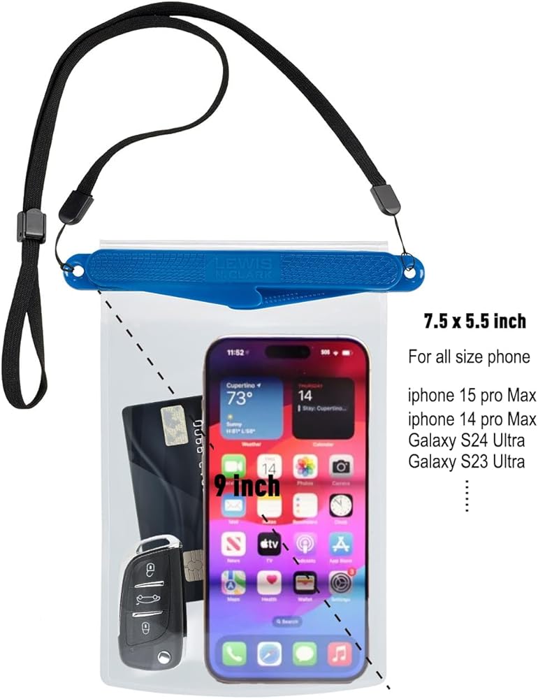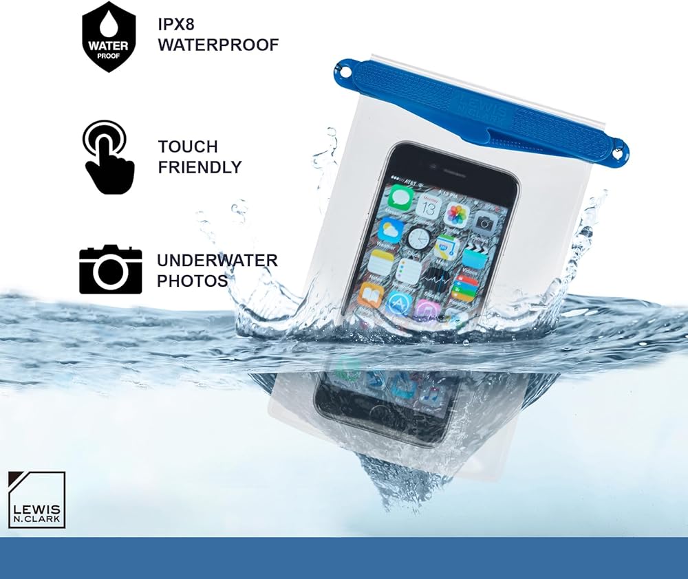 If youve ever wished you could bring your phone to the beach, on a boating trip, or even while snorkeling, this magnetic waterproof phone pouch now gives you that option. Foolproof and fumble-free, the double magnetic closure automatically seals with an audible snap for watertight protection. You can use your phone as if the pouch wasnt even there, so you can still listen to music, play a game, and watch a video without the need for a headphone or audio jack. The transparent TPU material also allows you to take crystal clear pictures and videos, even when youre underwater. You can also put other small items inside, such as credit cards, drivers licenses, keys, travel documents, money, memory cards, or other electronics such as MP3 players or cameras. Waterproof up to 100+ feet, the pouch is perfect for all kinds of water sports, including kayaking, canoeing, sailing, boating, surfing, stand up paddle boarding, snorkeling, swimming, and scuba diving. Its also great at the pool, beach, campground, waterpark, and on cruises. It can be used in wintertime recreational activities such as skiing, snowboarding, or snowshoeing. Even if its just a rainy or snowy day, this waterproof pouch will keep your belongings dry. Not only does it keep moisture out of the pouch, but it also keeps particles such as sand and dust out as well.