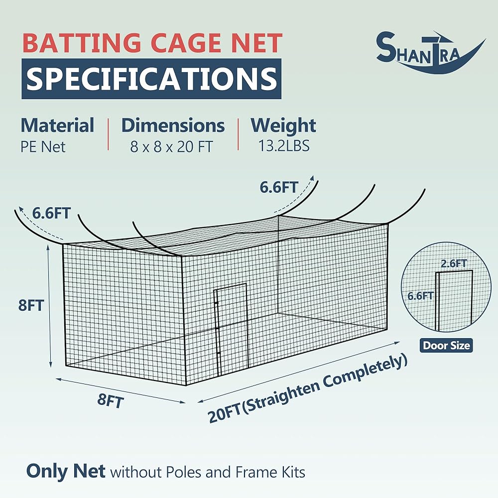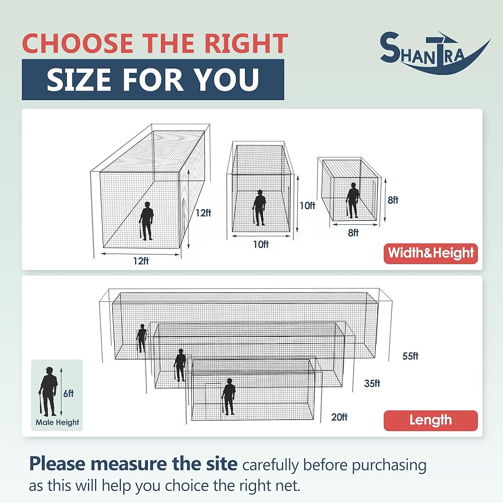 شانترا شبكة قفص الضرب، 55'L/35'L/20'L، شبكة قفص البيسبول والكرة اللينة مغلقة بالكامل - الشبكة فقط - لا تشمل الأعمدة والإطار - شبكة قفص الضرب من البولي إيثيلين مع باب، وشباك الضرب للفناء الخلفي للبيسبول