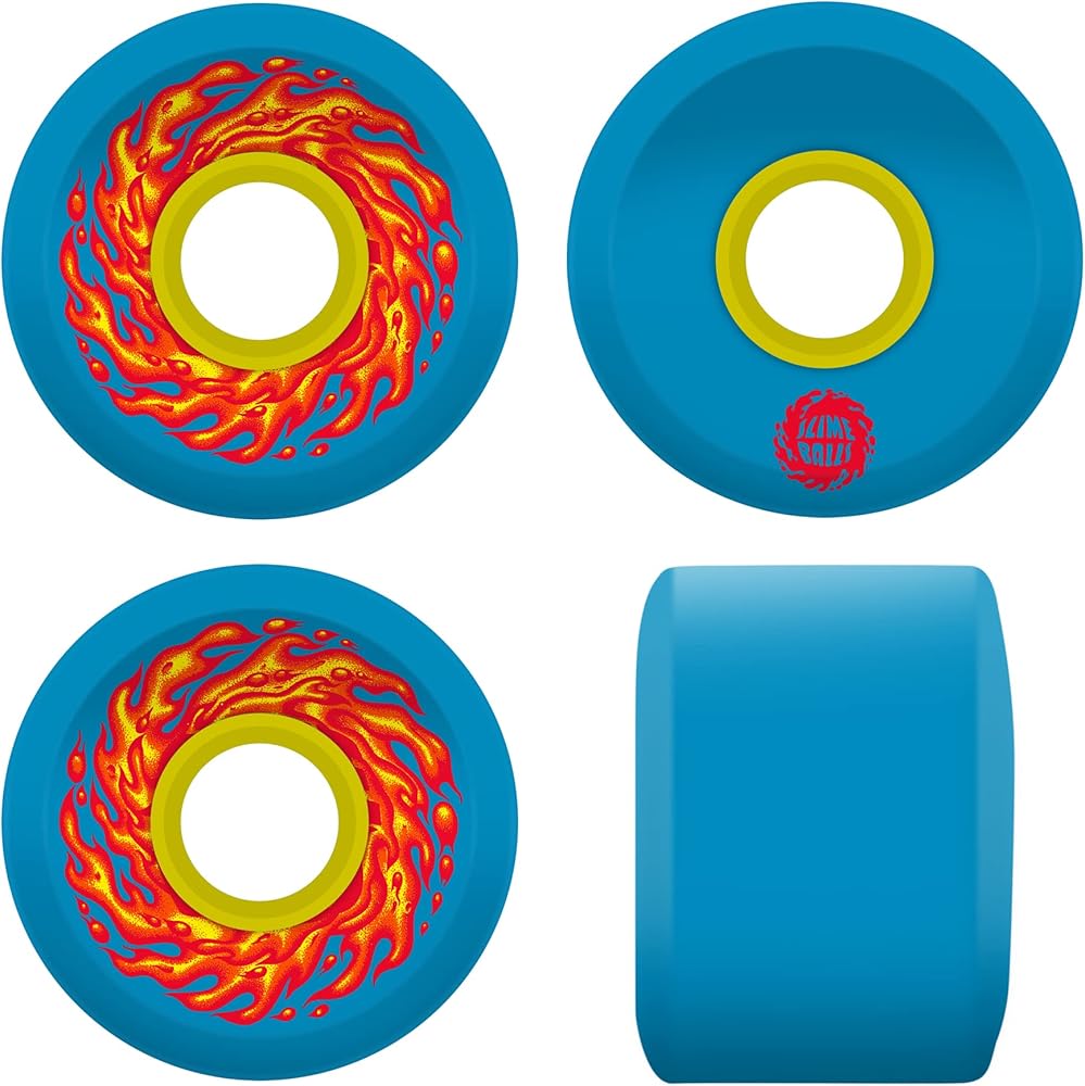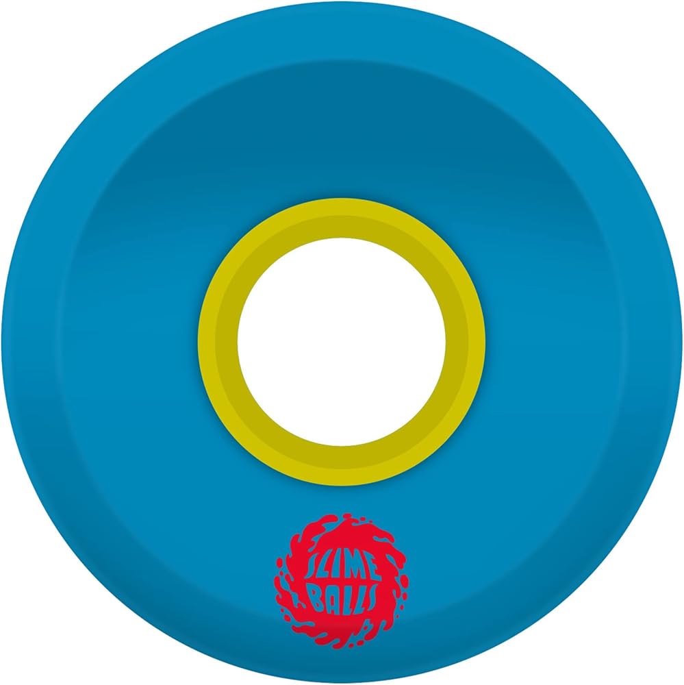 Slime Balls 60mm Flame OG Slime wheels in blue with yellow core. OG Slime is a versatile, symmetrical center bearing cruiser wheel shape with soft, all terrain 78a urethane.