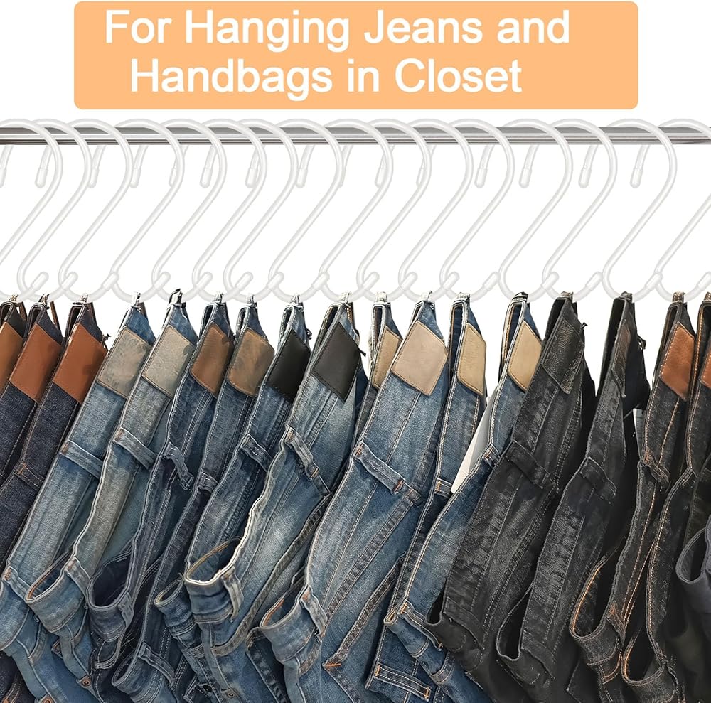 Rubber Coated Non-Slip Hooks:Our large s hook surface are coated with vinyl rubber and two rubber stopper on the end,which is rust-resistant, slipping and resist falling , you don't need to worry that these hooks would scratch your clothes or purse,scarf, jeans among using, and these closet s hooks would not Fall off when you remove the item.