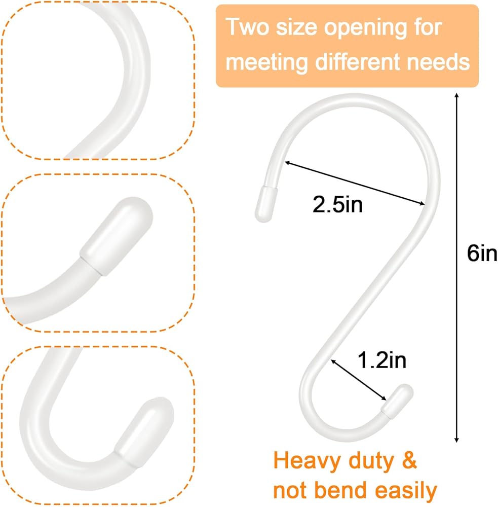 Premium Quality Material: Our large vinyl coated heavy duty s hooks are made of thick metal steel with vinyl coated, which is strong to hang heavier items and not easy to deformed.These practical and portable hooks are widely applied in closet ,kitchen, bathroom, storage room, workshop, office, and garage.garden,indoor and outdoor.