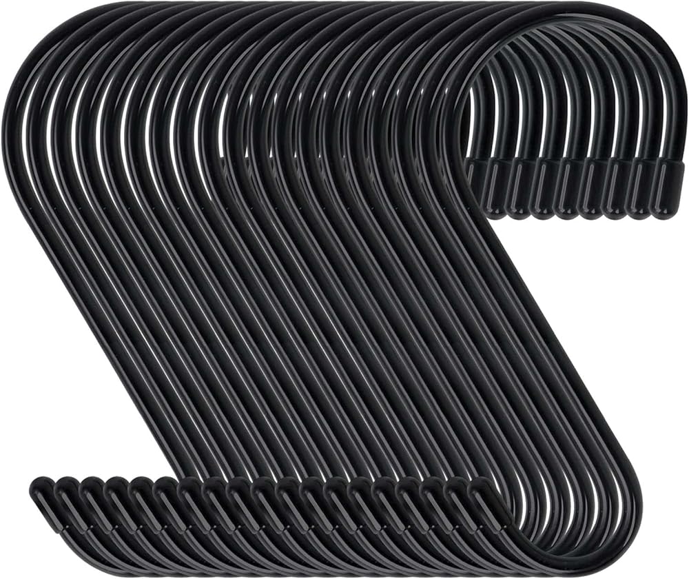 Easy to Use:These large s hooks it doesn't need to use tools,nails, screws, you can hang them on racks, bars, shelves,rod and place in closet,kitchen,garage,bathroom,garden and etc,large vinyl coated s hooks can hang lots of item to help you save more space,are a simple and friendly solution