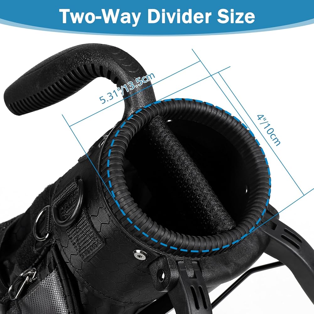 Waterproof Material: The bag made of 420D premium big honeycomb grid material features high wear resistance, tear resistance and waterproof function. The bracket made of sturdy aluminum alloy material, it has great load capacity that can hold clubs well. So it surely guarantees you a sturdy lifetime for its sturdy construction and a longtime satisfactory experience.