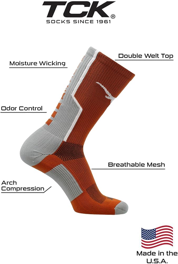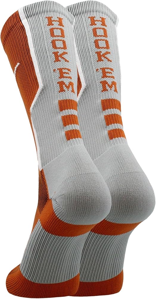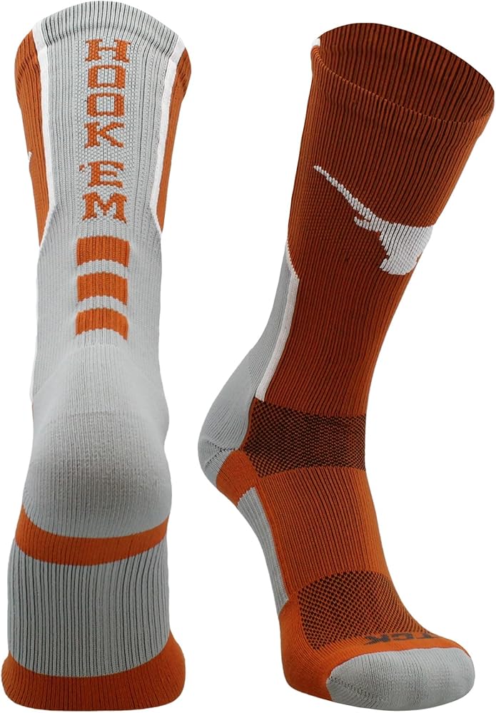 COMFORT AND BREATHABILITY: These premium quality Texas Longhorns Socks provide soft comfort. Mesh panel ventillation above the foot allows for proper air flow. Keeping the feet dry. Moisture management technology pulls away moisture from skin.