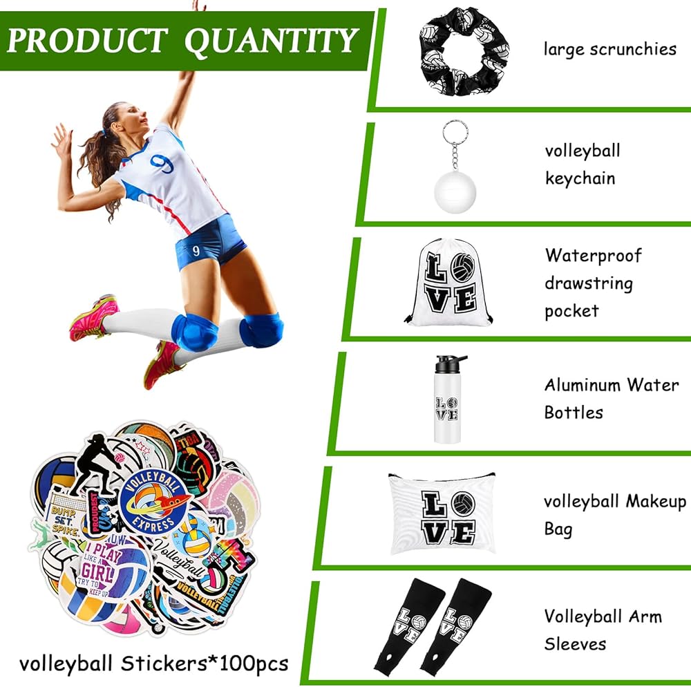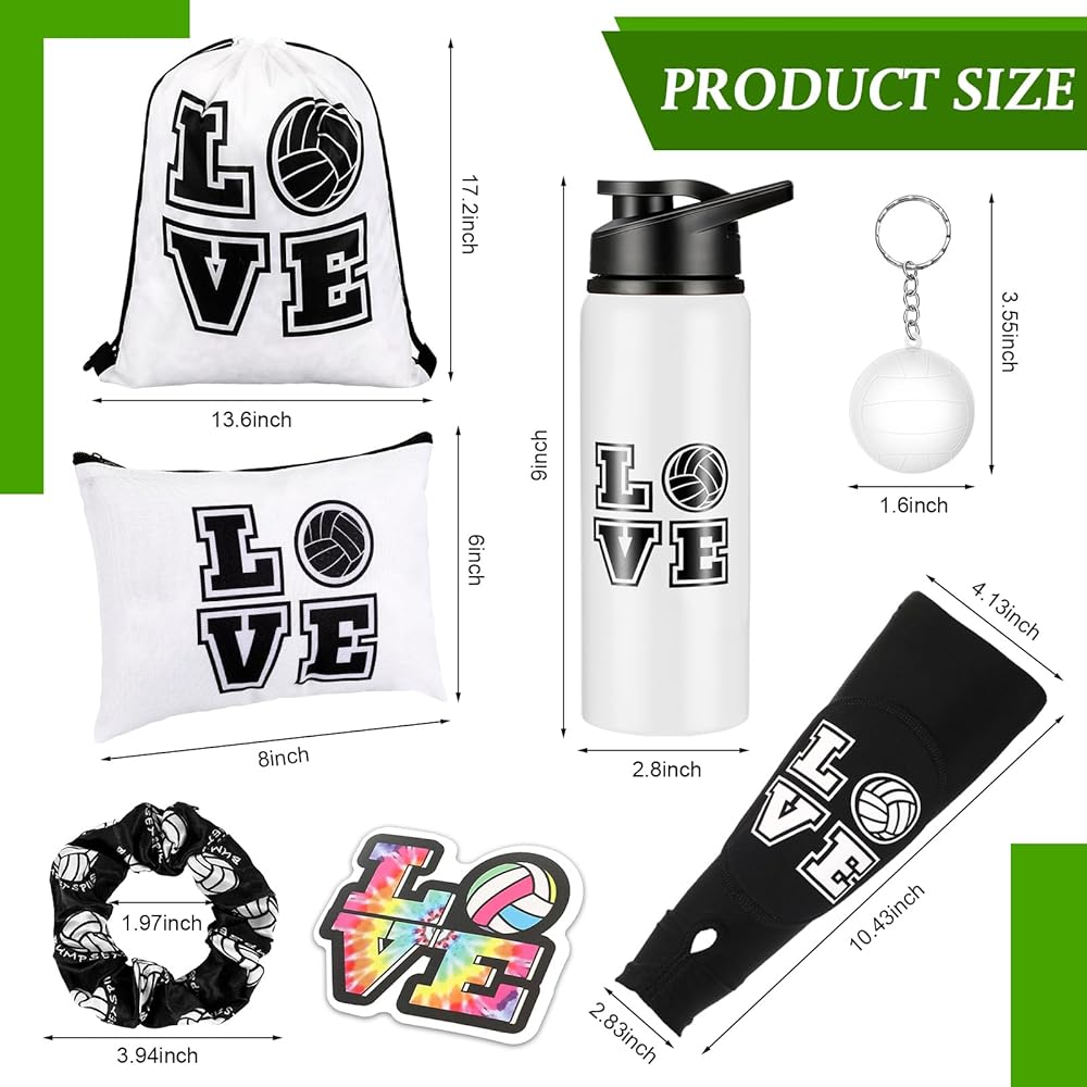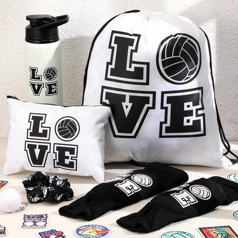 • Plentiful Content: you will receive 7 pieces of our volleyball gifts, including 1 piece of volleyball drawstring bag, 1 piece of volleyball pouch, 1 piece of volleyball keychain, 1 piece of volleyball water bottle, 1 piece of volleyball scrunchie, 1 pair of volleyball sleeves for women as well as 100 pieces of volleyball stickers in a pack, which can meet your sporting needs and replacements effortlessly