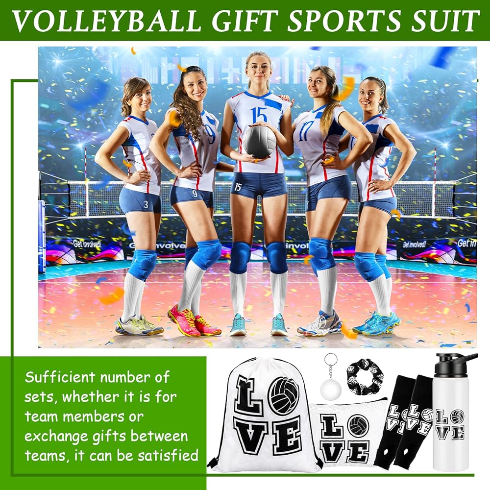 7 قطع هدية للكرة الطائرة للفتيات من LEIFIDE تتضمن زجاجة مياه للكرة الطائرة، وحقيبة برباط للكرة الطائرة، وحقيبة مكياج، وأكمام للذراع، وسلاسل مفاتيح وعصابة رأس مرنة وملصقات لمحبي لاعبي الكرة الطائرة