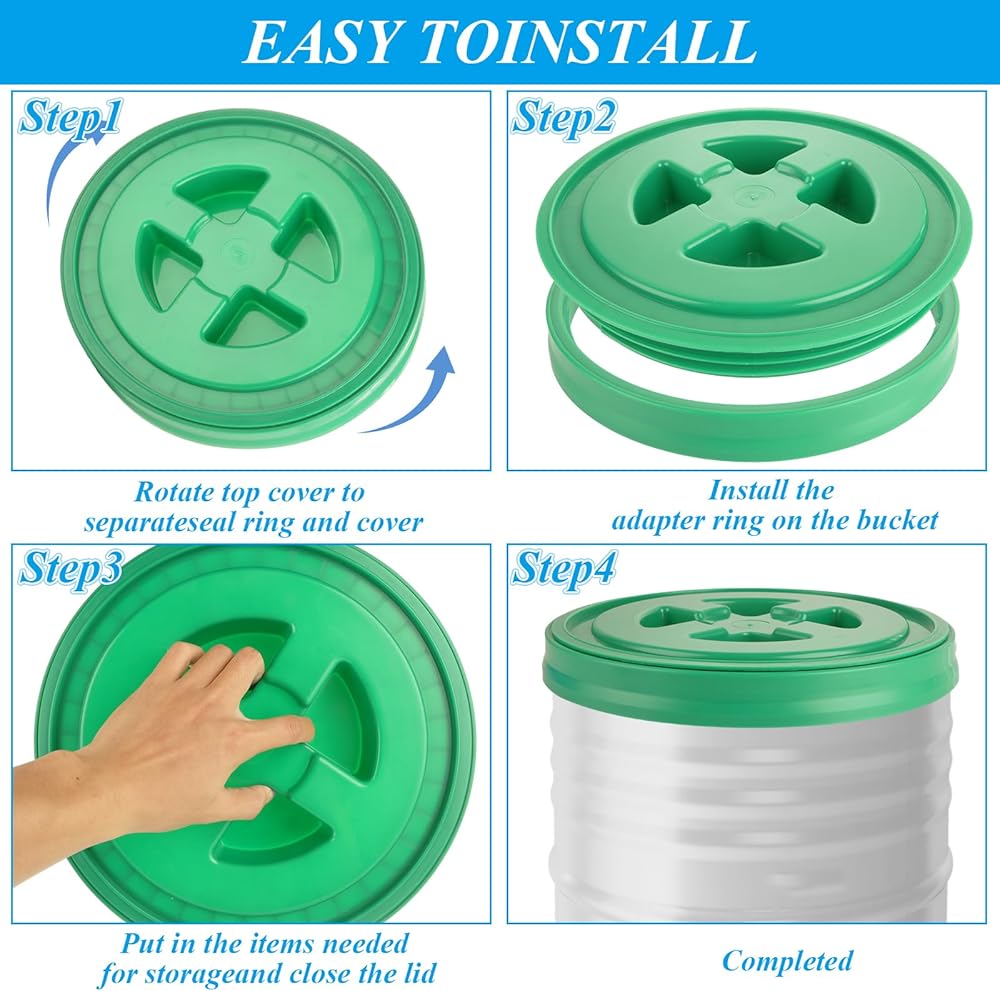 Each 5-gallon bucket lid is equipped with sealing ring to prevent the contents of the bucket from leaking