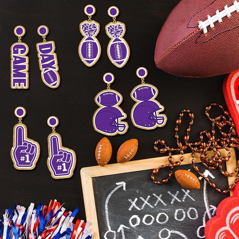 أقراط كرة القدم: ادعم فريقك المفضل مع أقراط كرة القدم الأكريليكية هذه. يتم تعليقها بكلمات "Game Day" اللافتة للنظر، وتزيين مظهر يوم اللعب الخاص بك بهذه الأقراط الرياضية خفيفة الوزن، وتظهر حبك للعبة، سواء كنت تلعب أو تشاهد اللعبة، فمن المؤكد أنها ستحبها أي مشجع لكرة القدم.