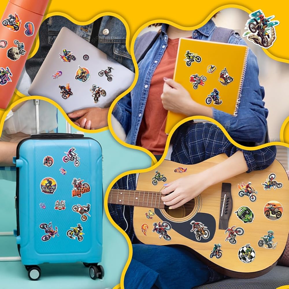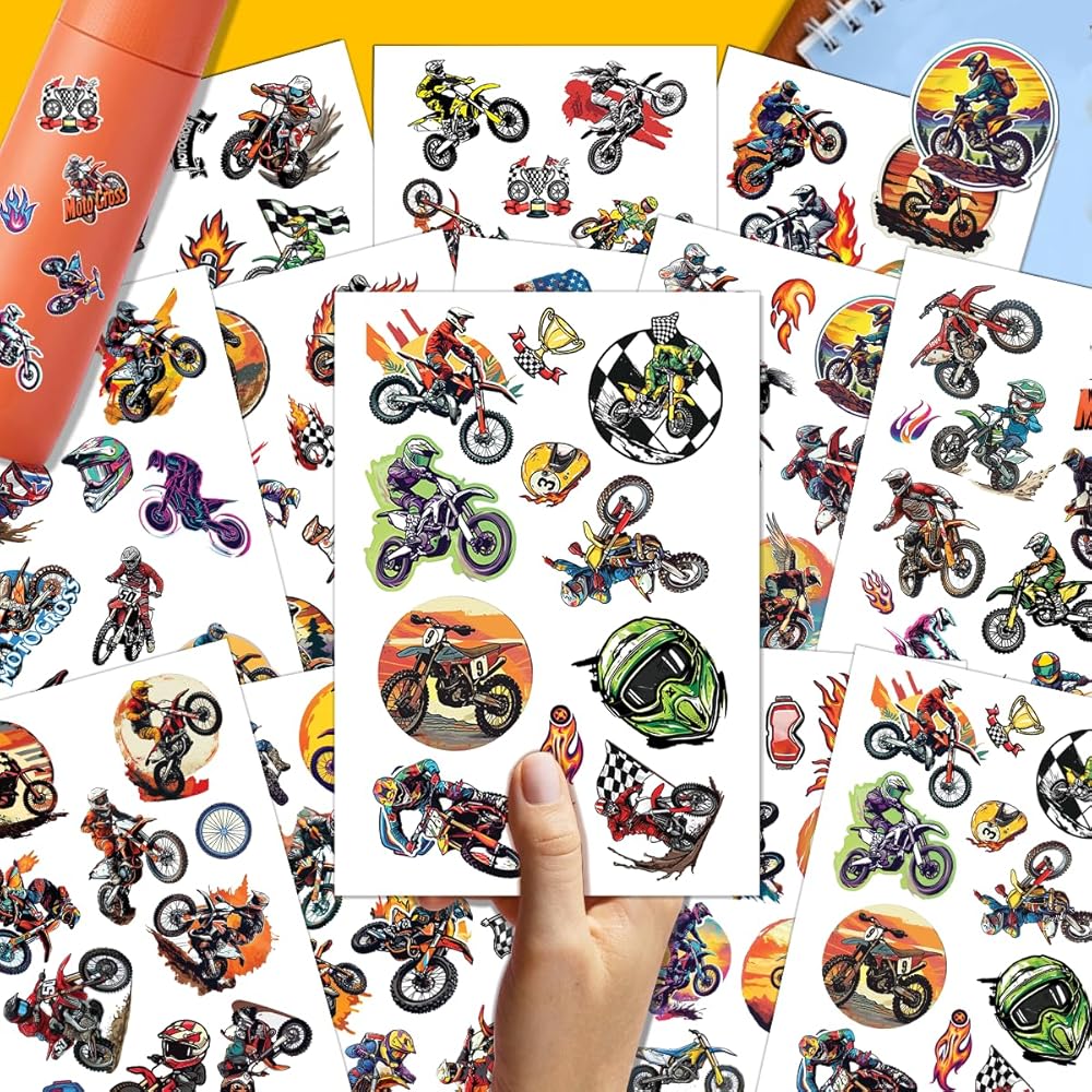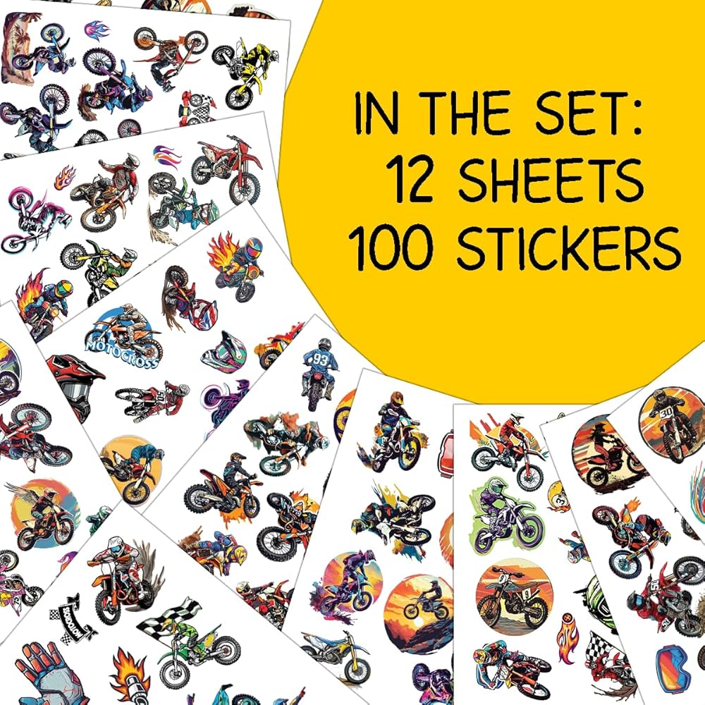 PACKAGE INCLUDES: The package includes 12 sheets, contains 100 pieces of different motocross stickers. All the retro off-road motorcycle stickers for water bottles are 100% Brand New. No random delivery and no duplicates, the pattern shown in the main picture will appear in your package.