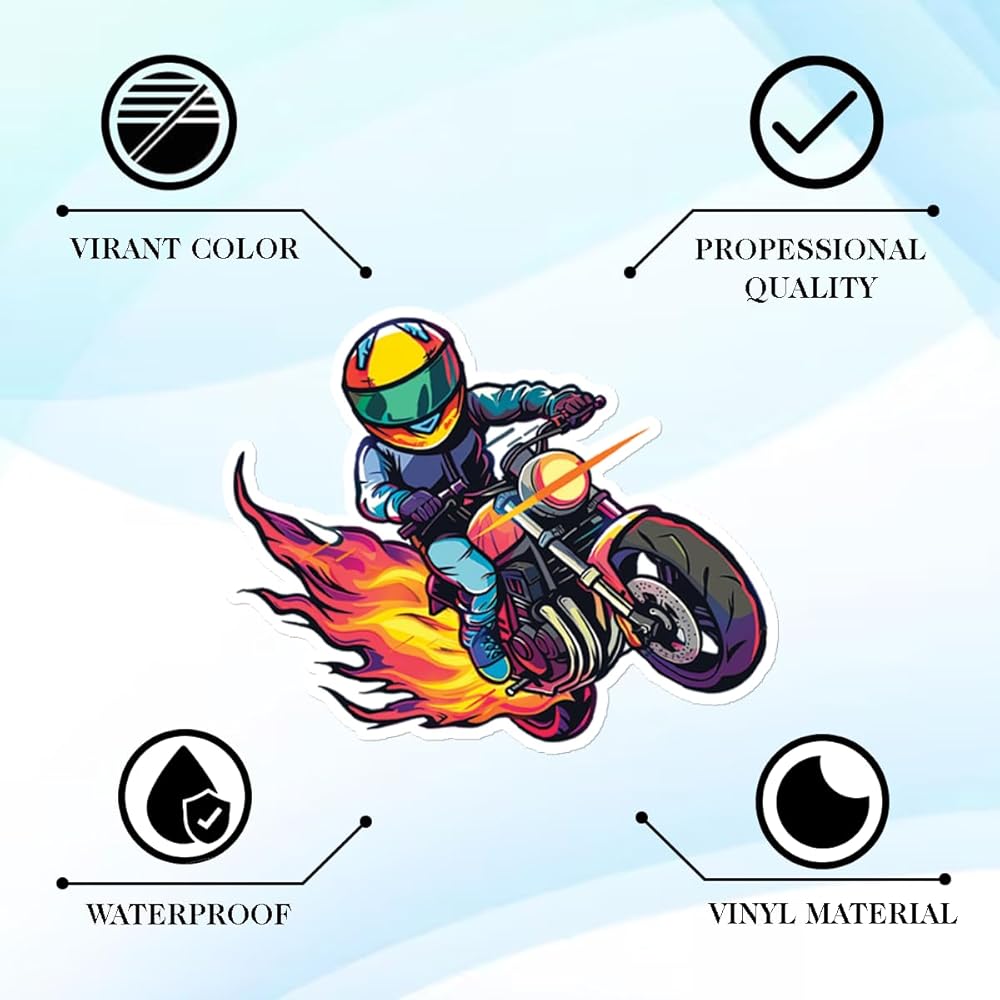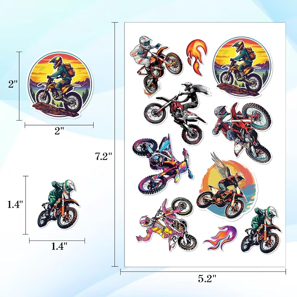 WELL-MADE STICKER :Made of non-toxic vinyl materials, our motorcycle stickers are safe, waterproof and durable. Each vinyl motocross sticker is about 2-3 inches, printed by the new high-definition, the pattern is more accurate and clear.