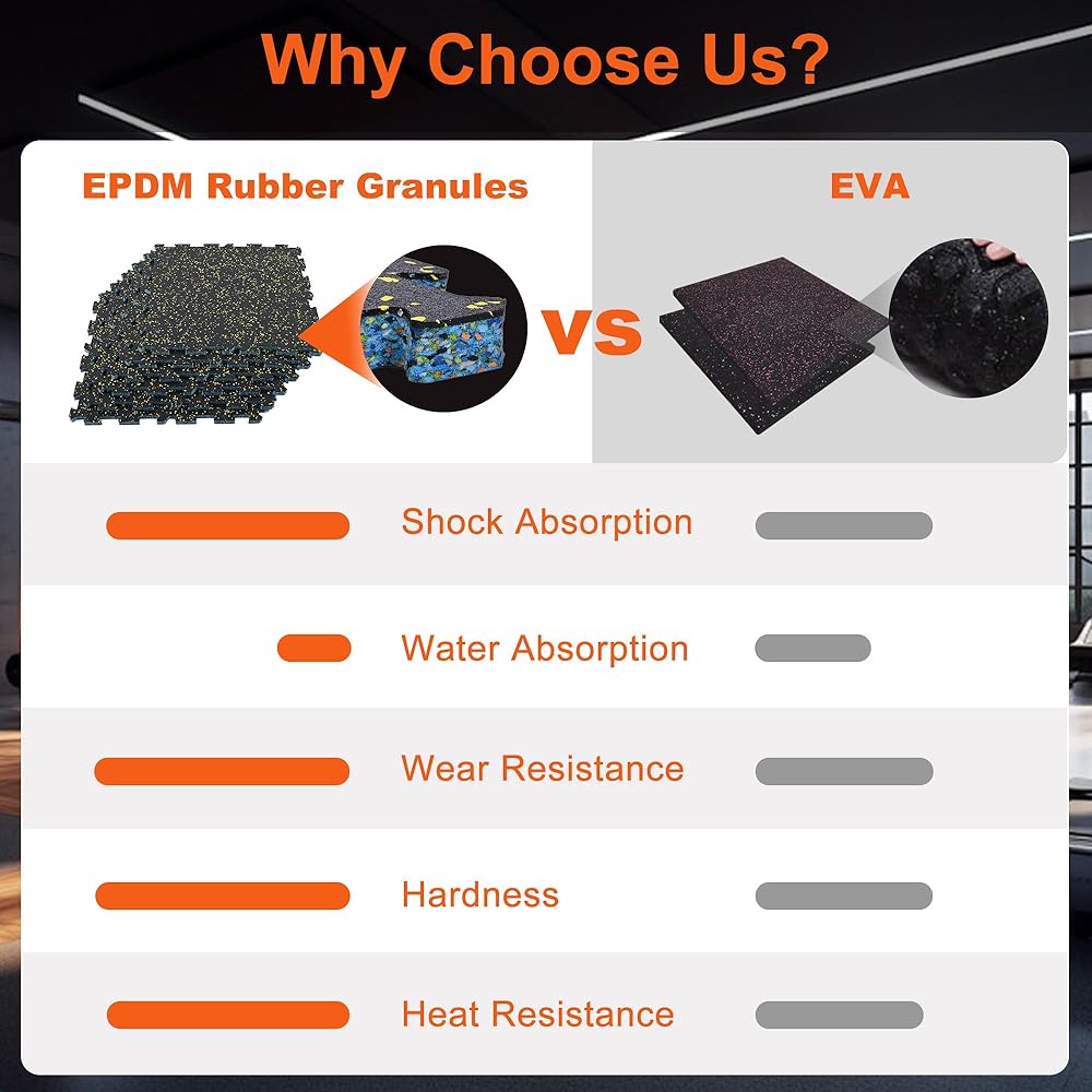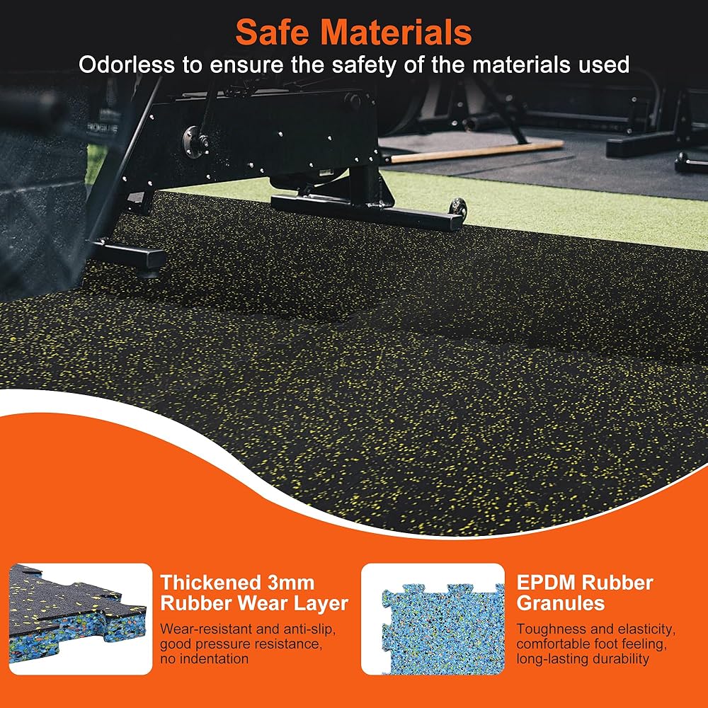 متينة ومرنة: سجادة صالة الألعاب الرياضية المطاطية هذه مصنوعة من الجزء العلوي من المطاط والجزء السفلي من حبيبات المطاط EPDM، بسمك إجمالي يبلغ 0.6 بوصة، مما يجعل السجادة أقوى وأكثر متانة؛ يوفر مزيج المواد مقاومة ممتازة للتآكل، مما يجعله مثاليًا للتمارين عالية الكثافة