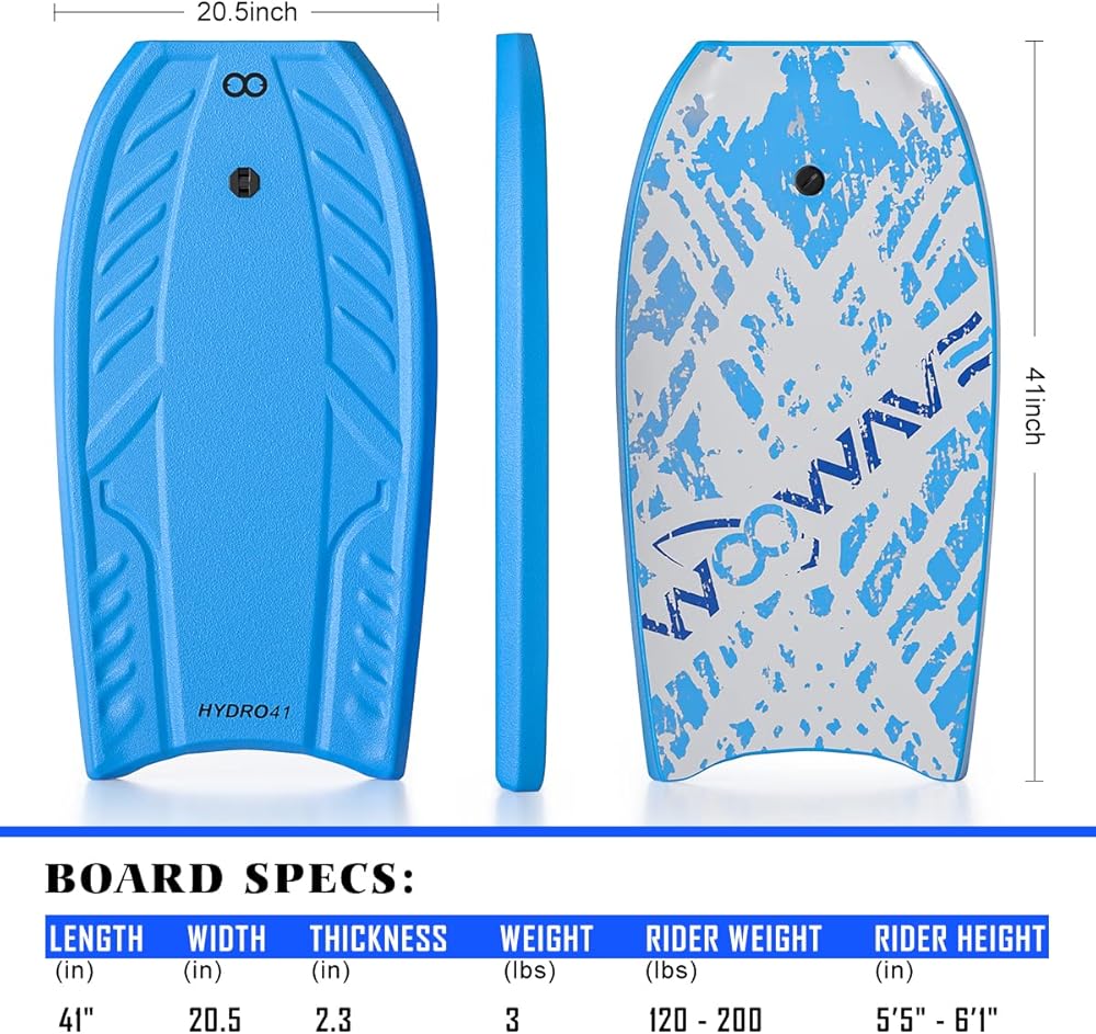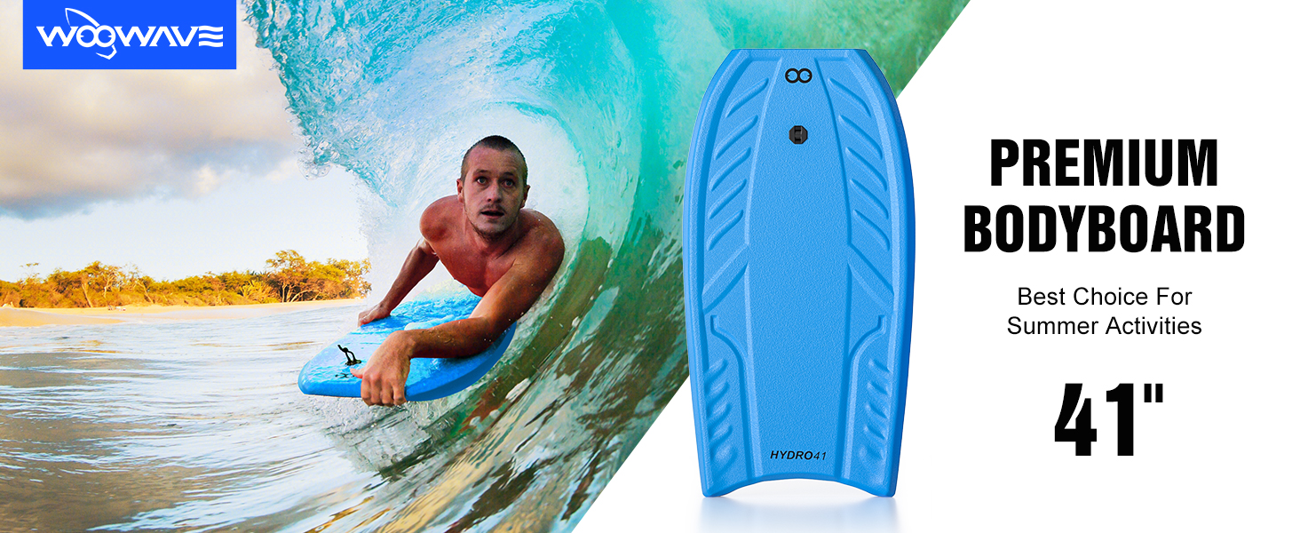 WOOWAVE Premium 41Inch Bodyboard for Kids and Adults with Coiled Wrist Leash
