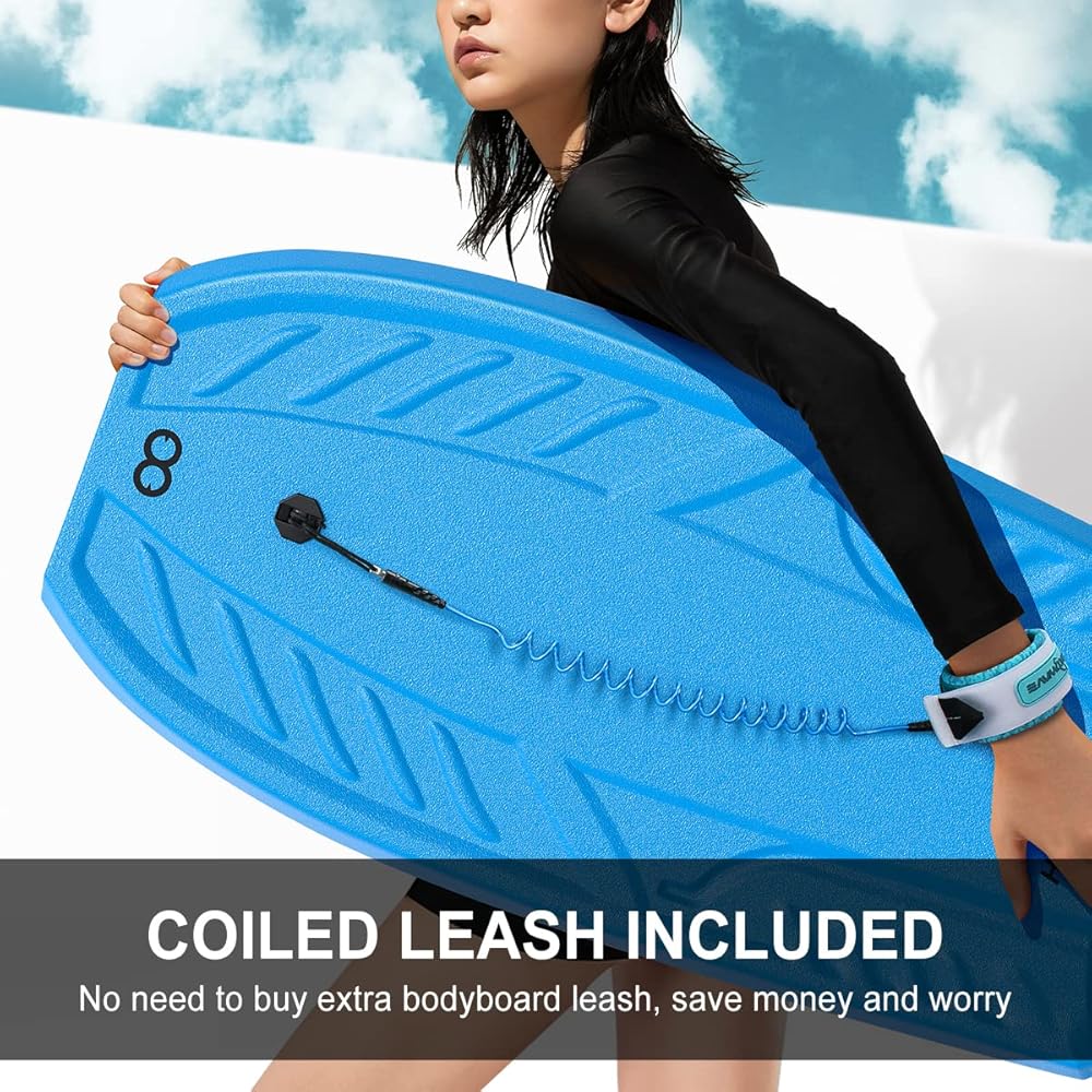 Excellent Accessory: The body board comes with excellent accessory. The premium coiled wrist leash will keep your board attached to you at all times and provides a good traction experience and enhances safety during surfing