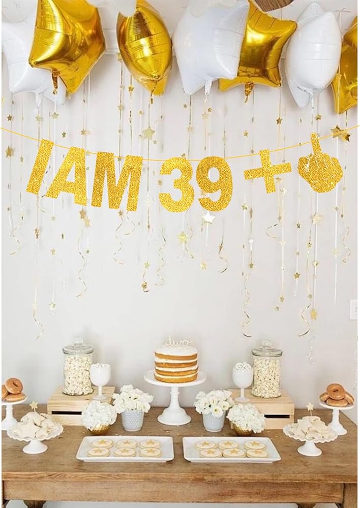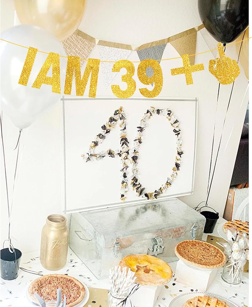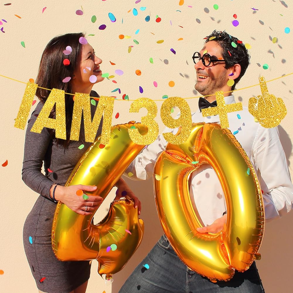 أنا 39+1 لافتة - لافتة عيد ميلاد الأربعين، لافتة عيد ميلاد سعيد، لافتة زينة عيد ميلاد ذهبية لامعة للنساء والرجال، لافتة هدايا عيد الميلاد الأربعين لتزيين حفلات أعياد الميلاد