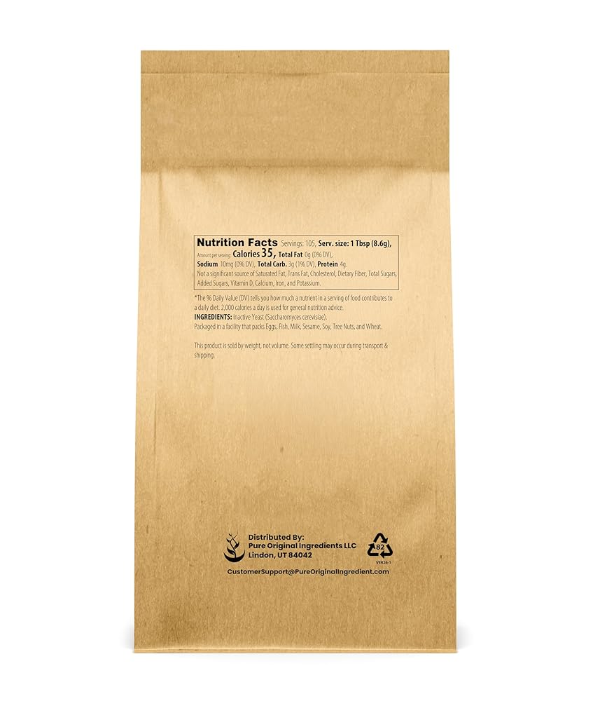 مكونات أصلية نقية خميرة البيرة (2 رطل) نقية دائمًا، بدون مواد مالئة أو إضافات، غير معدلة وراثيًا