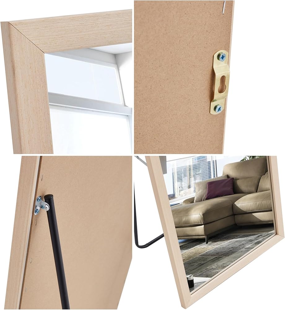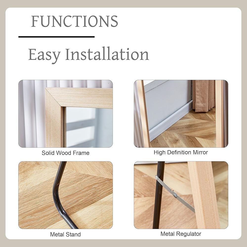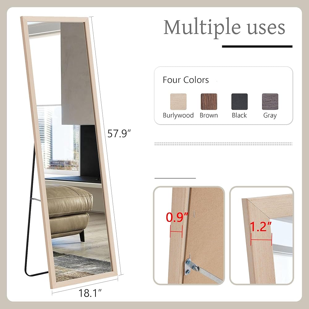 ChicFurnit Full Length Mirror with Stand, 58"x18" Floor Mirror Free Standing Wall Mirror, Modern Large Body Mirror with Wood Frame for Bedroom Living Room Dorm Gym, Light Oak/58"