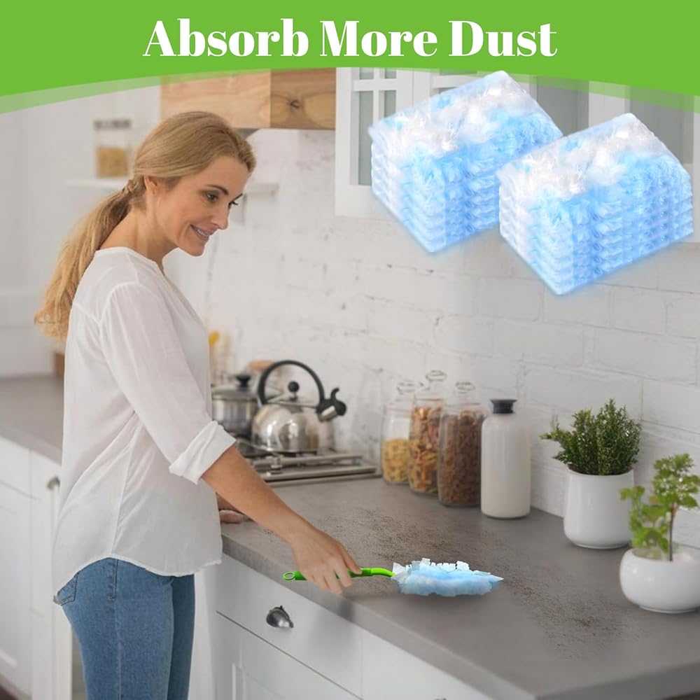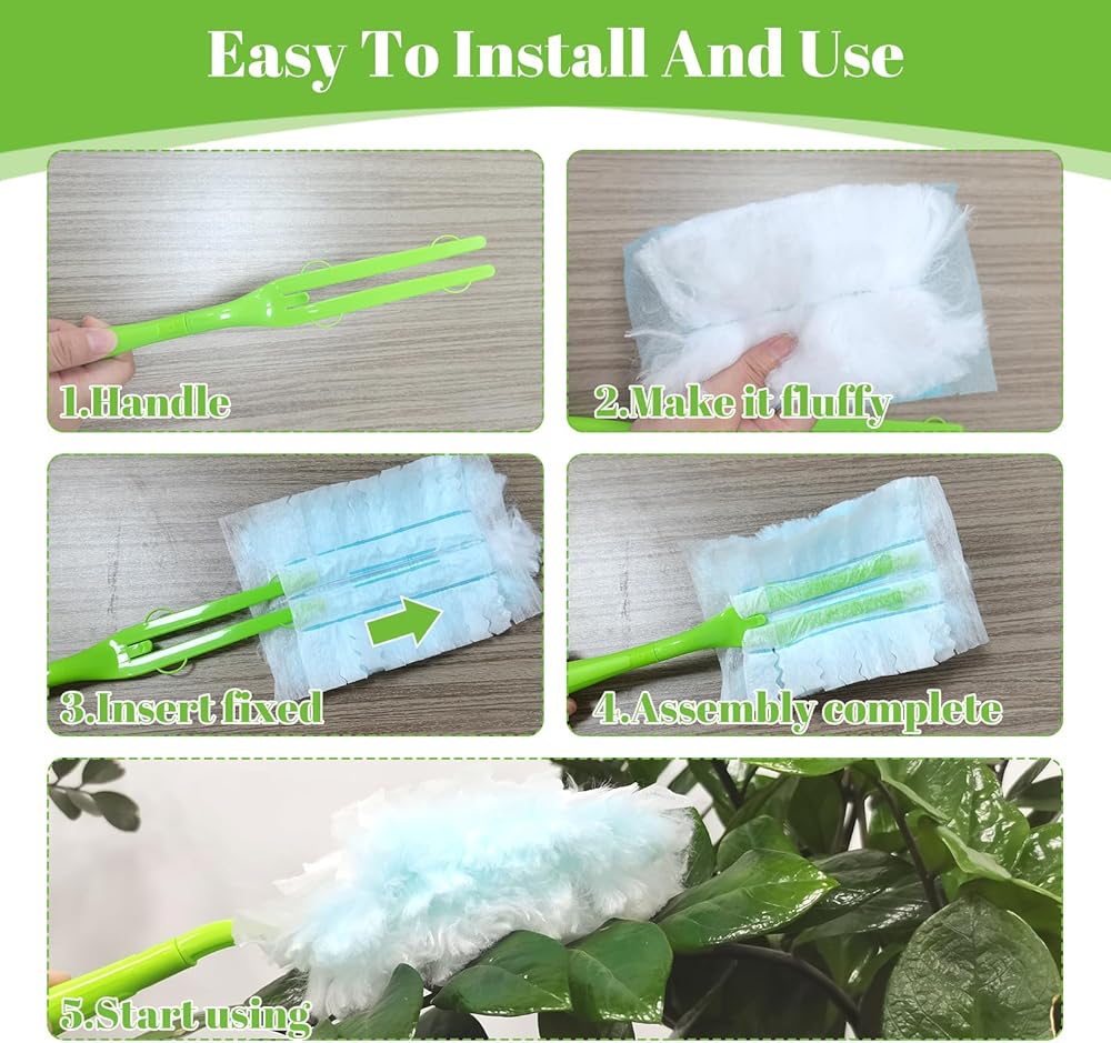 【سهلة الاستخدام】من السهل جدًا استبدال عبوة المنفضة هذه، ما عليك سوى تثبيت عبوة الملء على مقبض المنفضة وبدء التنظيف. عبوات المنفضة هذه متينة ولن تسقط بسهولة. نوصي بهز عبوة المنفضة بالتساوي قبل الاستخدام.
