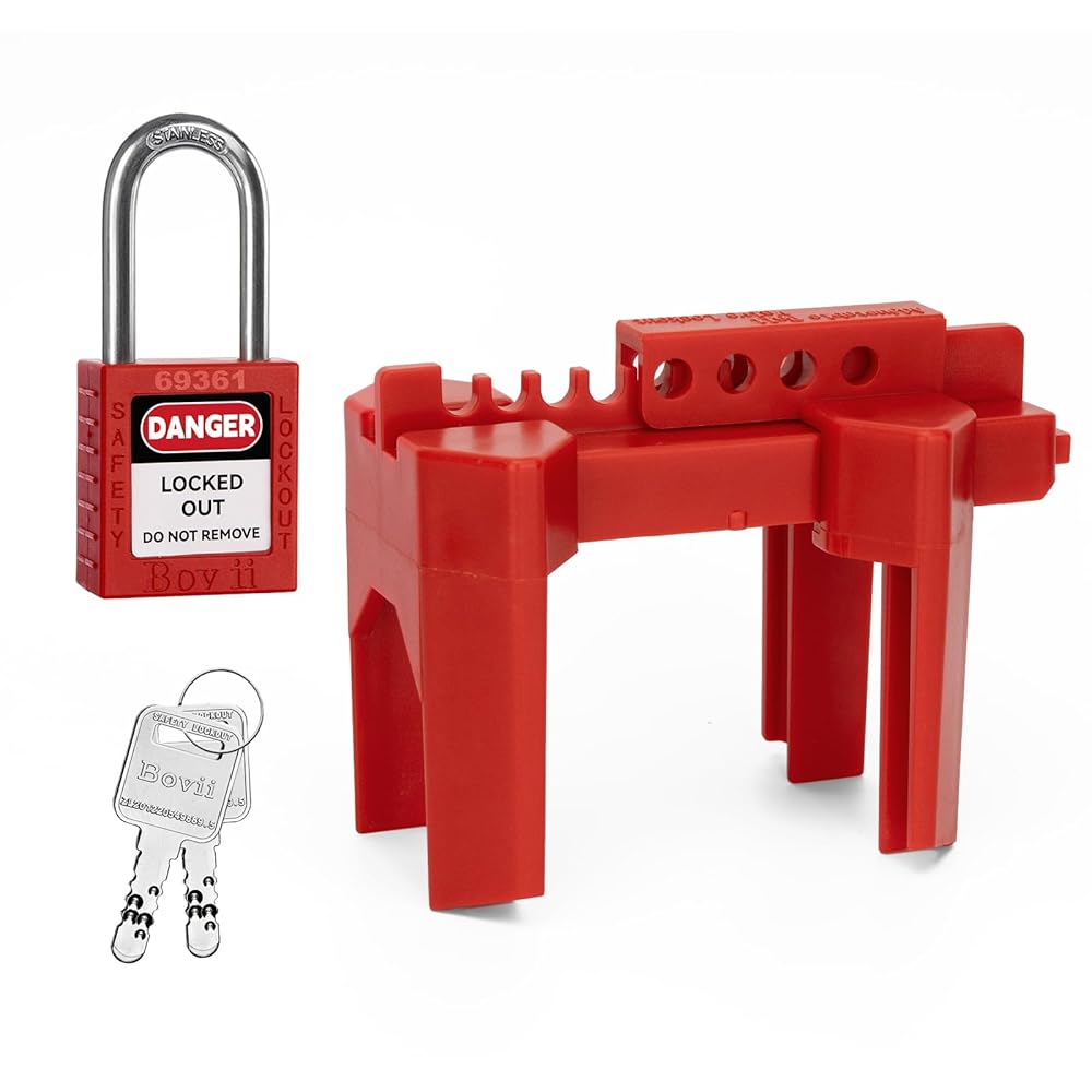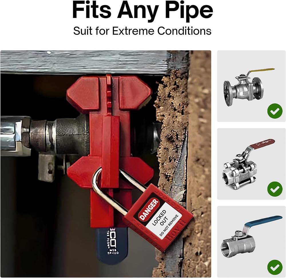 This set contains 1 Boviisky ball valve lockout. Boviisky ball valve lockout is designed for a five-year service life. The ball valve lockout is made of ABS material, which offers high resistance to temperature, corrosion and abrasion, effectively combating rust. This ball valve lock adopted bright red color design to improve visibility and Deterrent. The lockout is sturdy and not easy to break