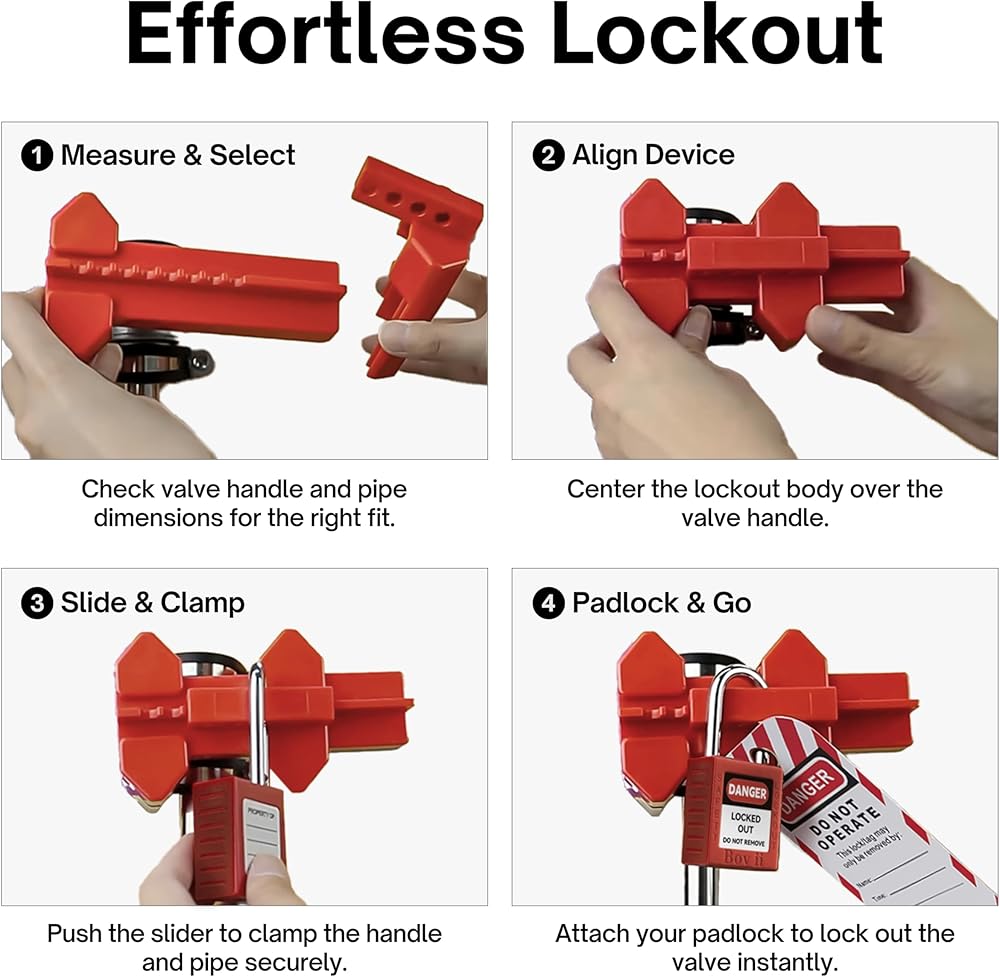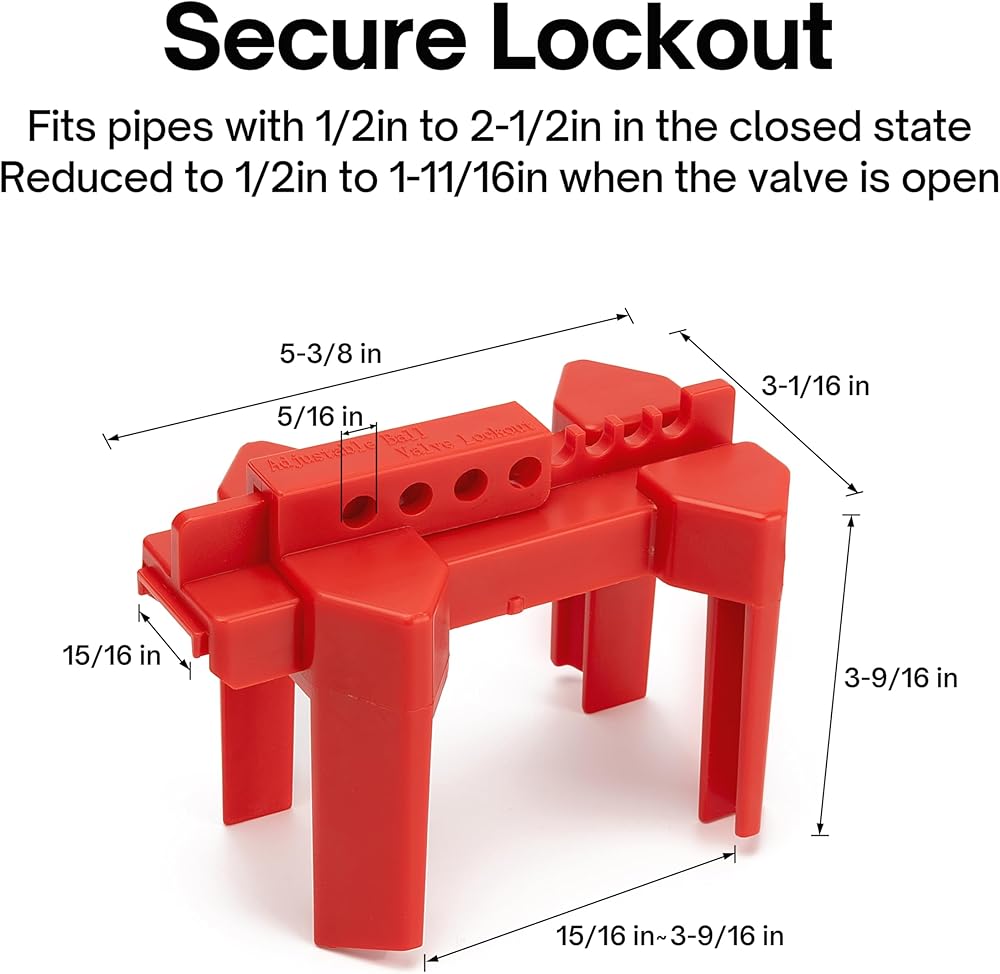 𝐃𝐨𝐮𝐛𝐥𝐞-𝐑𝐨𝐰 𝐊𝐞𝐲𝐡𝐨𝐥𝐞 𝐃𝐞𝐬𝐢𝐠𝐧: This set includes 1 ball valve lockout device. The adjustable ball valve features a double-row keyhole design, enabling it to accommodate up to 5 padlocks
