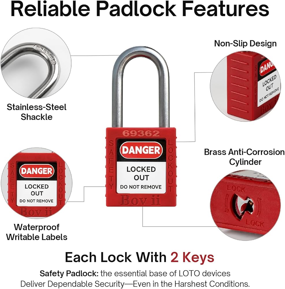𝐃𝐮𝐫𝐚𝐛𝐥𝐞 𝐚𝐧𝐝 𝐒𝐭𝐮𝐫𝐝𝐲 𝐁𝐚𝐥𝐥 𝐕𝐚𝐥𝐯𝐞 𝐋𝐨𝐜𝐤𝐨𝐮𝐭: Boviisky ball valve lockout device are designed for a five-year service life. Made from ABS material, it offers high resistance to temperature, corrosion, and abrasion, effectively combating rust. The material is sturdy and not easy to break