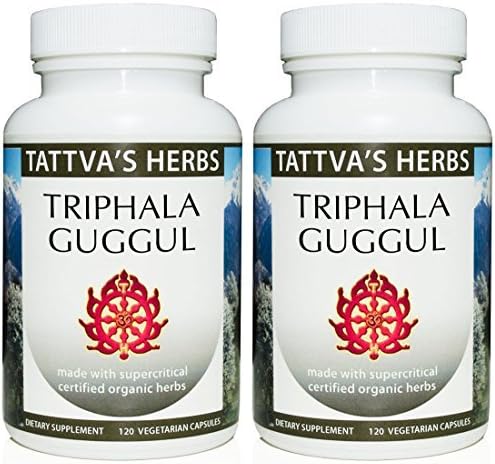 Support your digestive health with Triphala Guggul Herbal Supplement from Tattva's Herbs. This carefully formulated blend helps maintain a healthy digestive system and aids in natural cleansing, promoting overall balance and well-being. With the revitalizing properties of Triphala and Guggul, this supplement supports whole-body revitalization, enhancing your vitality and energy levels. Utilizing supercritical extraction, our supplement delivers the whole herb to your body, ensuring optimal potency and bioavailability. This product is also Non-GMO, sustainable, vegan, cruelty-free, gluten-free, dairy-free, and soy-free, making it a conscientious choice for those committed to a healthy lifestyle. Embrace the benefits of this Ayurvedic herbal supplement and elevate your wellness routine with Triphala Guggul from Tattva's Herbs.