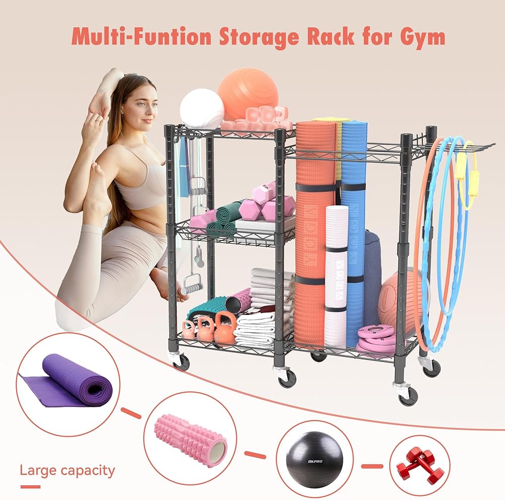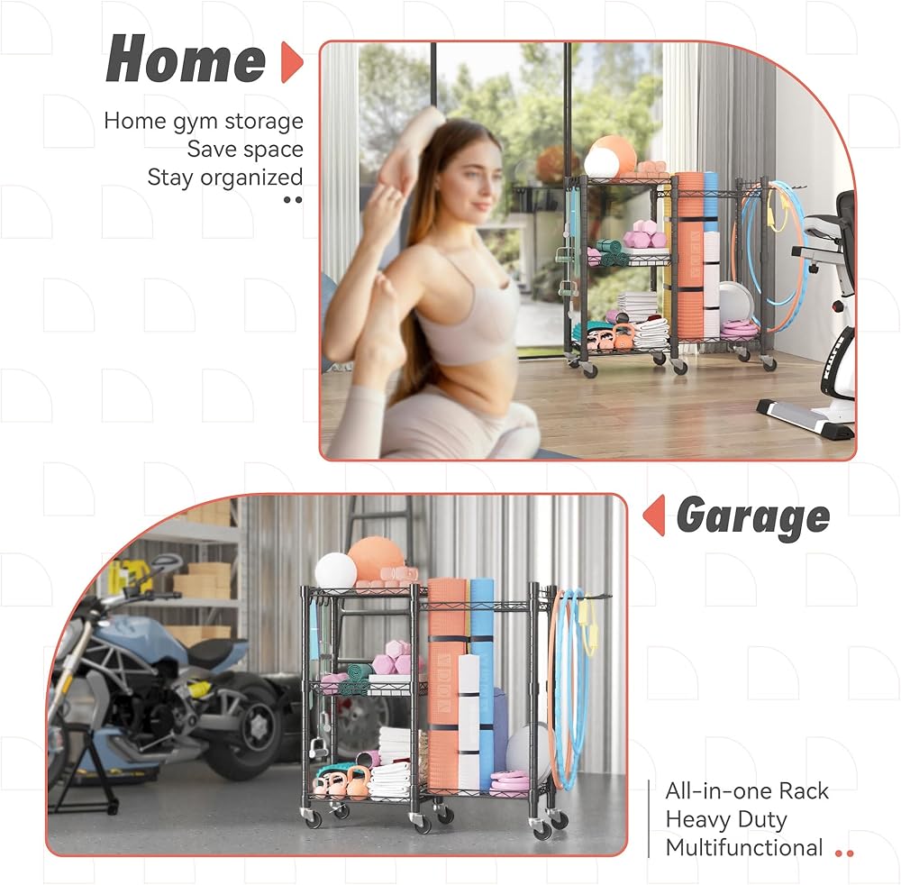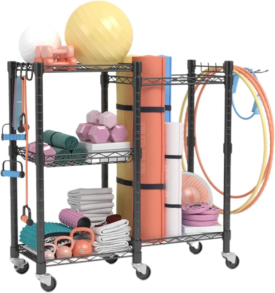تخزين صالة الألعاب الرياضية المنزلية من Hasipu، حامل أثقال للدمبل وسجادات اليوجا وأجراس الكيتل، منظمة أرفف صالة الألعاب الرياضية، تخزين معدات صالة الألعاب الرياضية، منظم صالة الألعاب الرياضية المنزلية لممارسة التمارين الرياضية، رف تخزين صالة الألعاب الريا