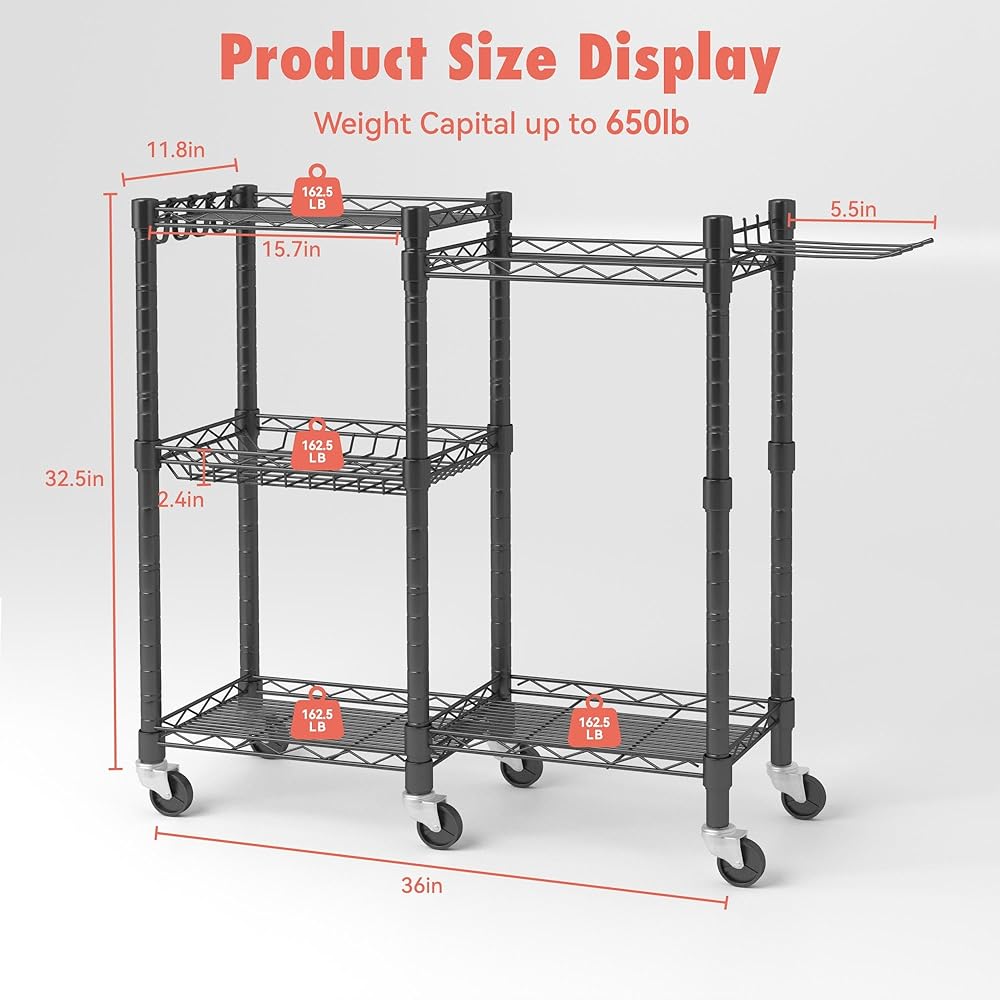 【سهولة التجميع والتنقل】رفوف تخزين الوزن سهلة التجميع دون الحاجة إلى أدوات معقدة. كما أن نظام العجلات المتضمن يجعل الرف سهل الحركة، مما يسمح بإعادة ترتيب المساحة الخاصة بك بشكل مريح حسب الحاجة.