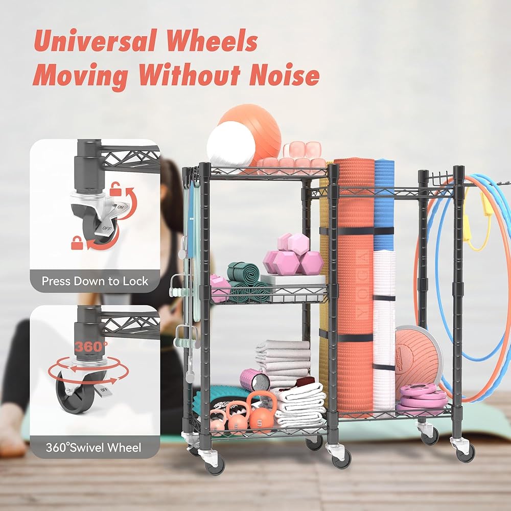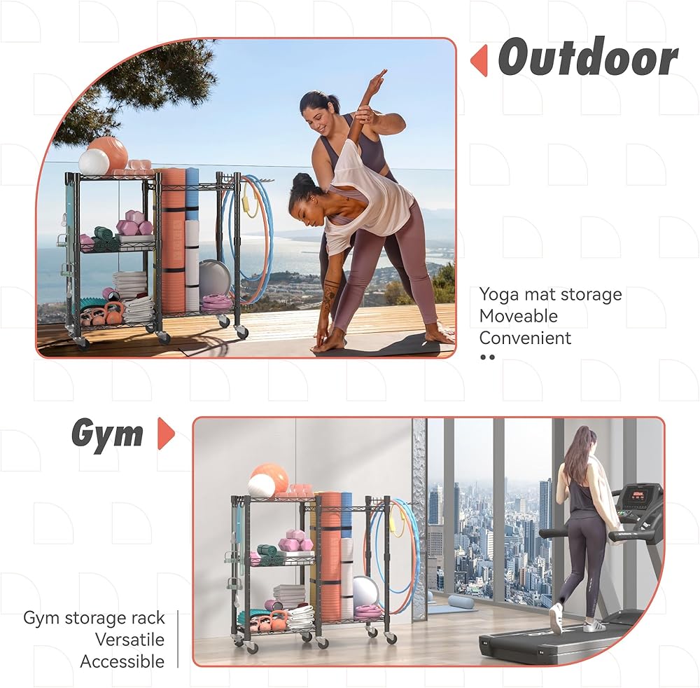 【تصميم موفر للمساحة】 يعمل التصميم الرأسي لرف تخزين اليوجا هذا على زيادة استخدام المساحة إلى أقصى حد، مما يسمح بسهولة تخزين سجادة اليوجا والإكسسوارات الخاصة بك حتى في المساحات الضيقة، مما يحافظ على غرفتك مرتبة ومنظمة.