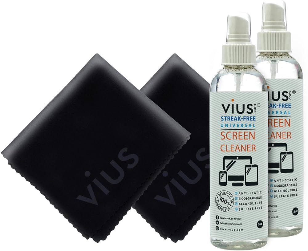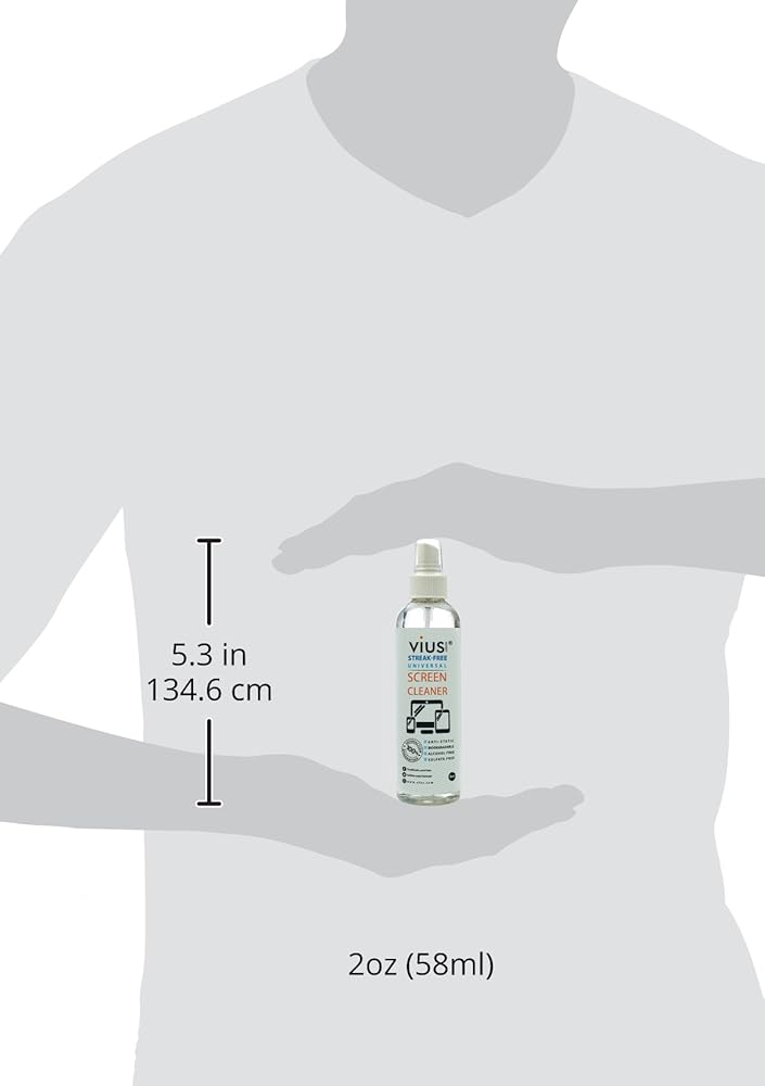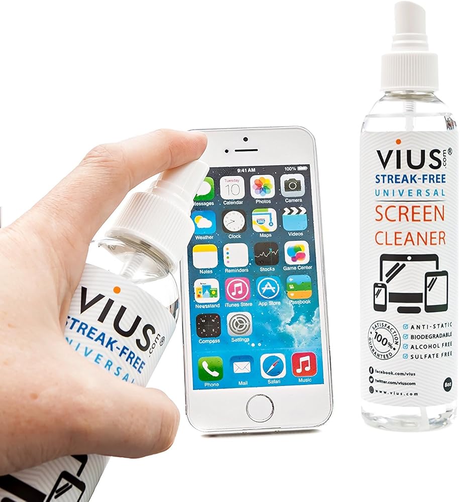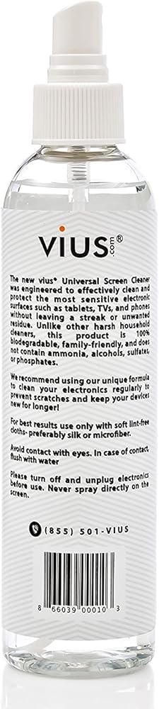 The new vius Universal Screen Cleaner was engineered to effectively clean and protect the most sensitive electronic surfaces. Great for all kinds of LCD / LED displays including laptops, tablets, TVs, projection TVs, smartphones, and keyboards without leaving a streak or unwanted residue. Unlike other harsh household cleaners this product is 100% biodegradable, family-friendly, and does not contain ammonia, alcohols, sulfates, or phosphates.
