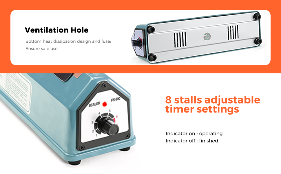 • 【مانع تسرب الحرارة الاحترافي】دائرة تحكم إلكترونية دقيقة لسداد الأكياس الدافعة للتحكم في الوقت والحرارة تلقائيًا. حجم صغير مانع تسرب الحرارة: 8 بوصة (200 مم) طول الختم، عرض الختم 2 مم، جودة معدنية وطلاء مزدوج، ثبات وصدأ جيد. تأثير. تشتمل معدات ختم الأكياس على مجموعتين بديلتين.