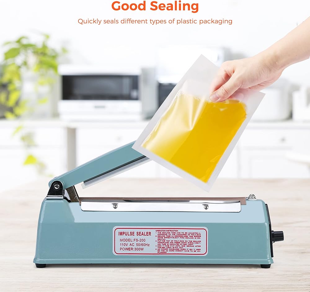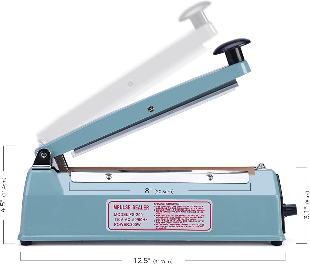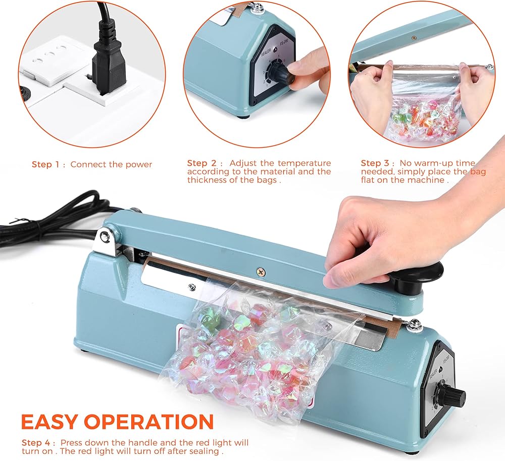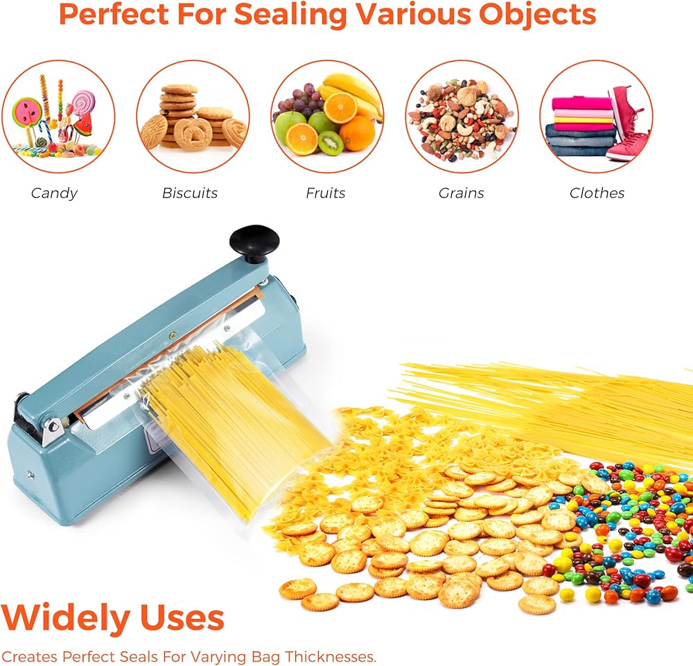 سدادة الأكياس الدافعة مقاس 8 بوصة، آلة إغلاق الحرارة لملفات تعريف الارتباط، آلة ختم يدوية ساخنة لأكياس البوليستر ولفائف الانكماش مع طقم إصلاح مجاني (أزرق)