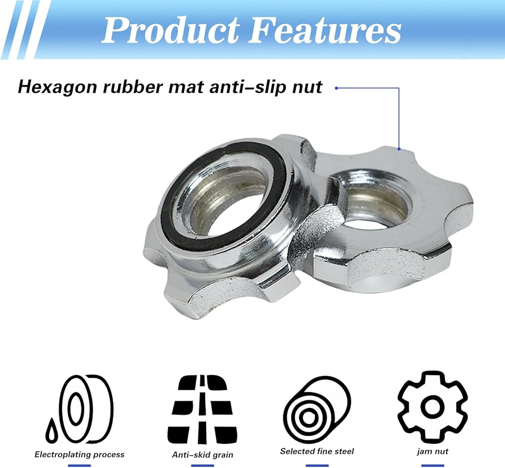 Note: Anti-slip hex nut fit all 25 mm standard weight lifting barbells or dumbbell bars. Also Anti-skid silent gasket can reduce the noise.This as good dumbbell bars replacement accessories.