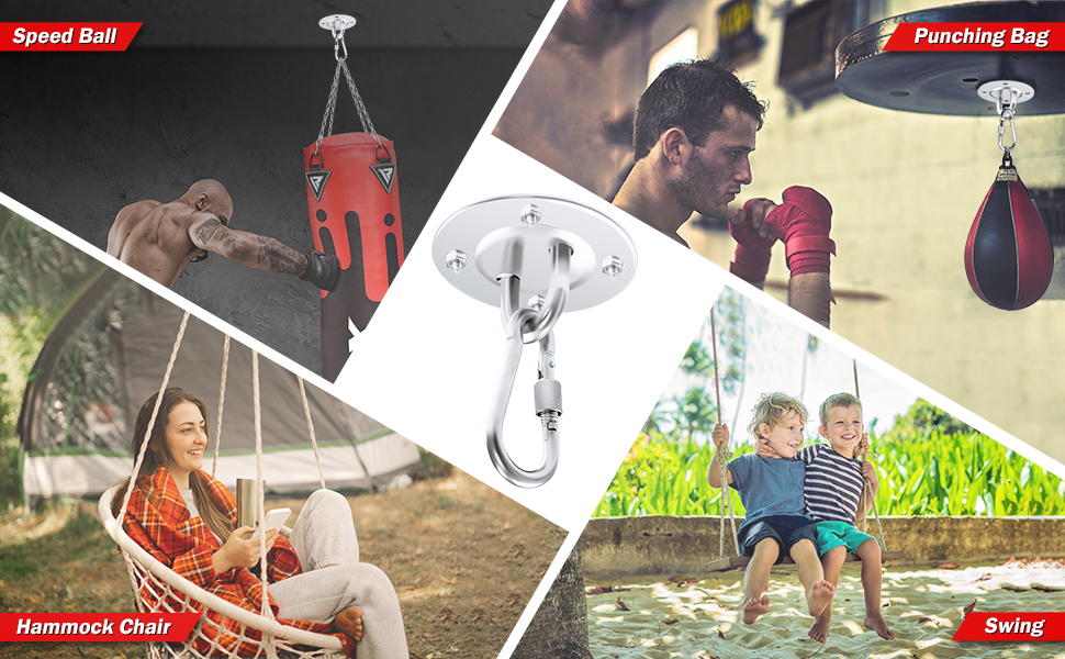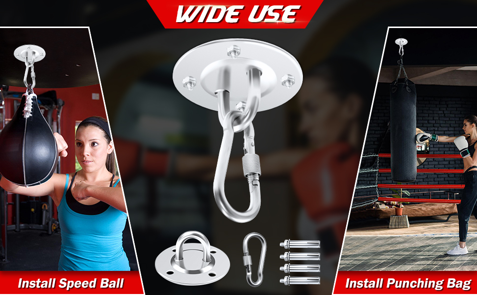 • الاستخدام على نطاق واسع: رائع لجميع أحجام الملاكمة، وحقيبة الملاكمة التايلاندية، والأرجوحة، والكرسي، ومجموعات التأرجح، وأراجيح الشرفة، وأراجيح الحبال، والمقاعد الدوارة وما إلى ذلك.