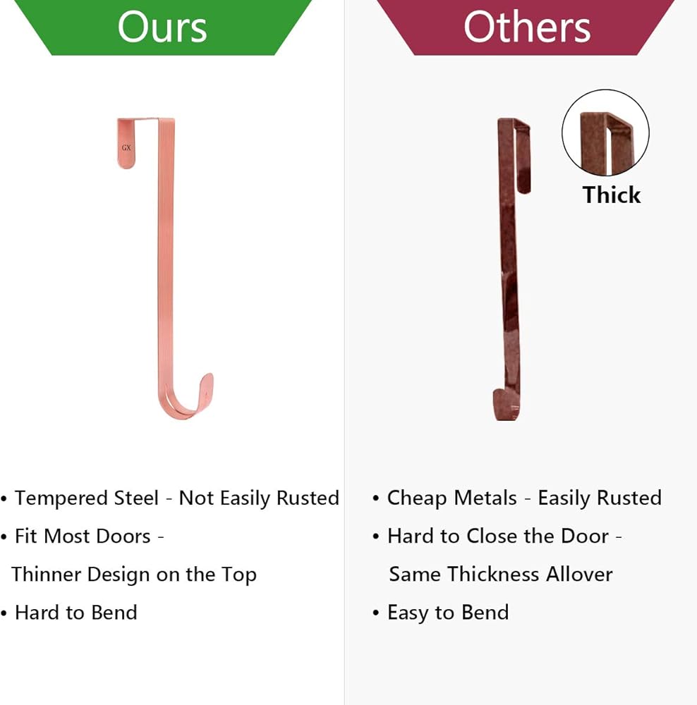 GameXcel 2 قطعة 12 بوصة إكليل من الزهور للباب الأمامي - خطاف معدني كبير لإكليل عيد الميلاد فوق الباب - نحاس
