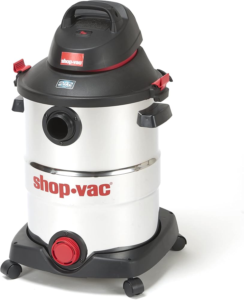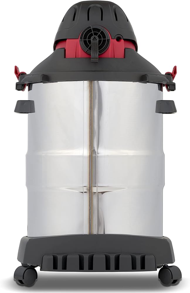 • The large 12 gallon tank of this Shop-Vac Wet/Dry Vac is constructed of durable stainless steel and comes in a bright polished finish