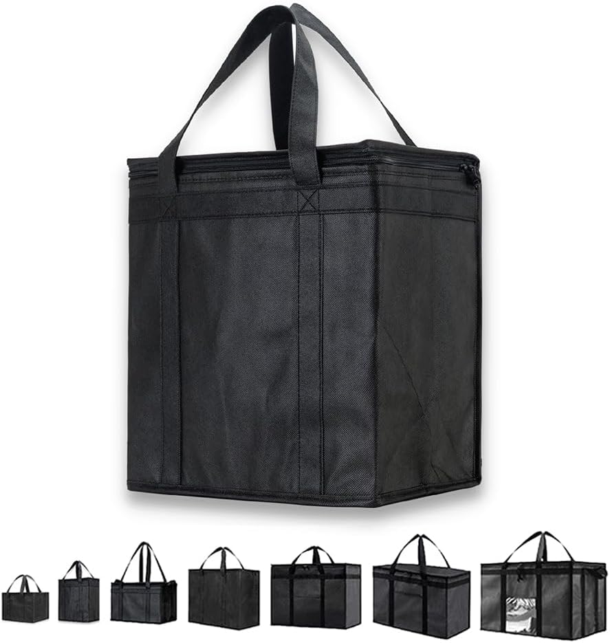 حقيبة تبريد معزولة متوسطة الحجم من NZ Home وجهاز تسخين الطعام لتوصيل الطعام وتسوق البقالة مع جزء علوي بسحاب، أسود (عبوة واحدة)