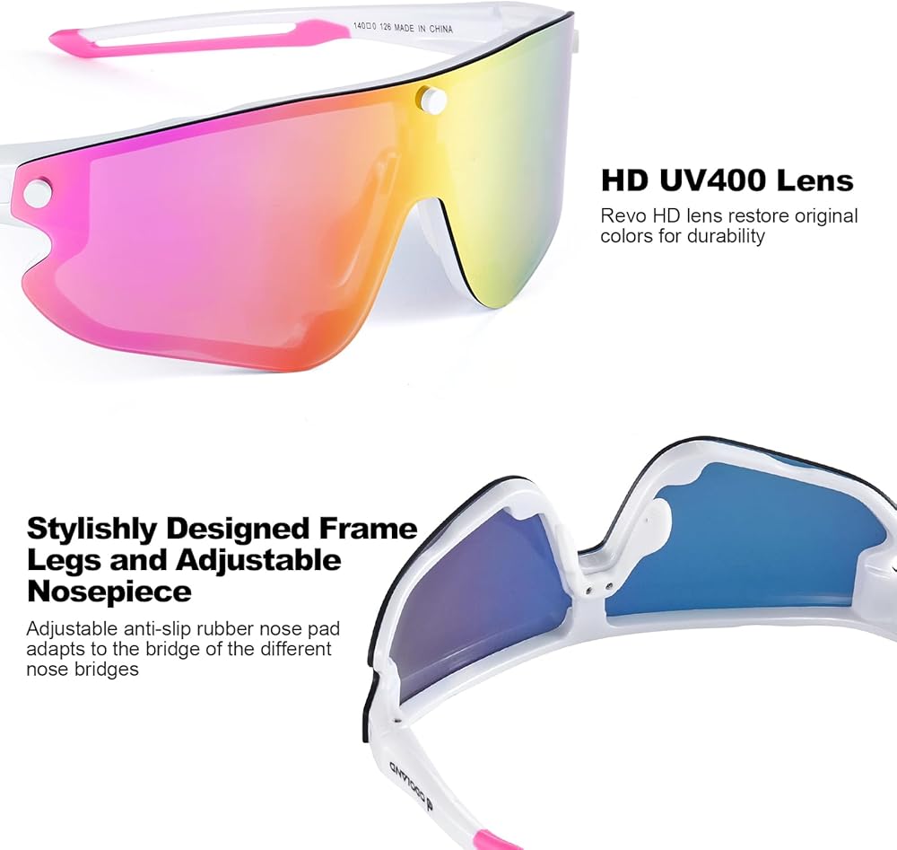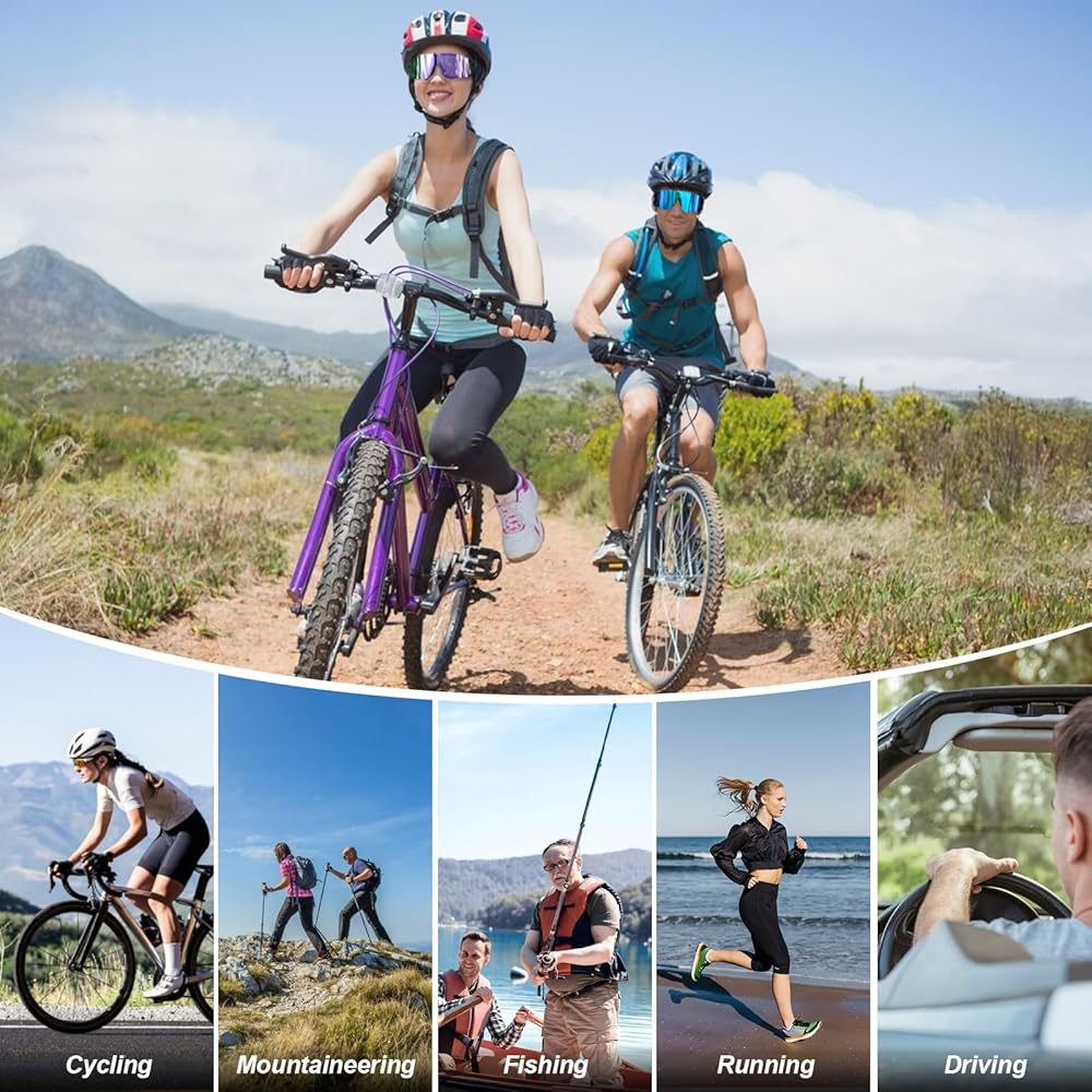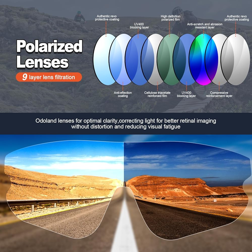• 🚴【حماية ملونة مستقطبة عالية الدقة من الأشعة فوق البنفسجية 400】تحجب طبقة الحماية من الأشعة فوق البنفسجية 400 الأشعة فوق البنفسجية فئة A والأشعة فوق البنفسجية فئة B الضارة، وتتميز بطبقة ريفو عالية الكثافة يمكنها استعادة اللون الأصلي لتحسين وضوح الرؤية والتباين. تتيح لك خيارات العدسات متعددة الألوان الحصول على أنماط مختلفة.