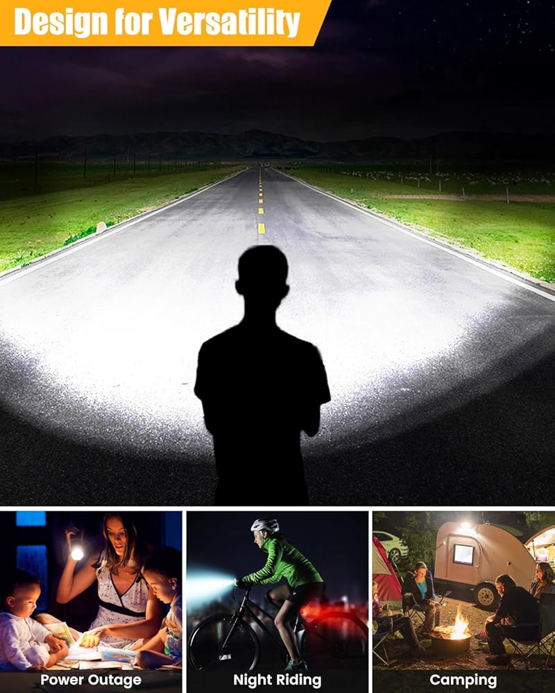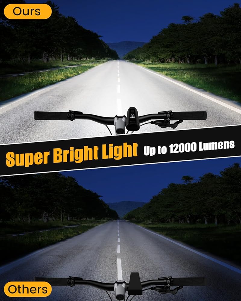 أضواء الدراجة فائقة السطوع للركوب الليلي: قم بإضاءة رحلاتك الليلية باستخدام أضواء الدراجة الأمامية والخلفية، مما يوفر 12,000 لومن مذهلة لرؤية استثنائية. مع نطاق يزيد عن 1640 قدمًا وشعاع بزاوية عريضة 165 درجة، سوف ترى بسهولة منطقة أوسع في الظلام