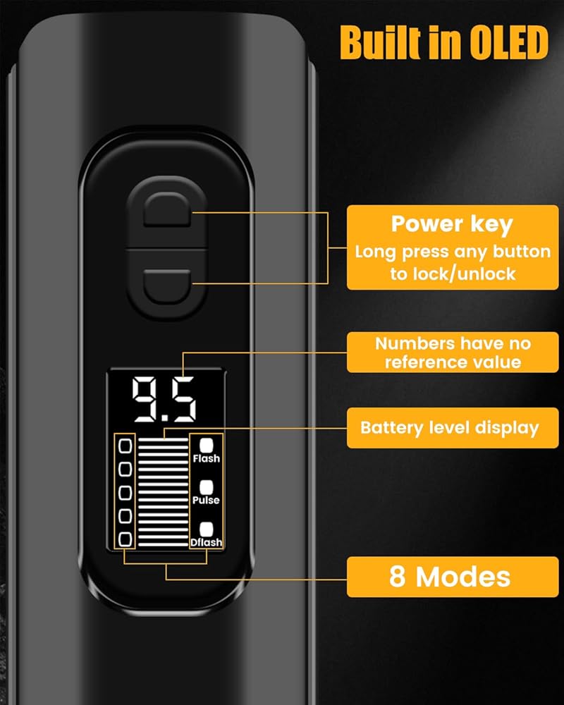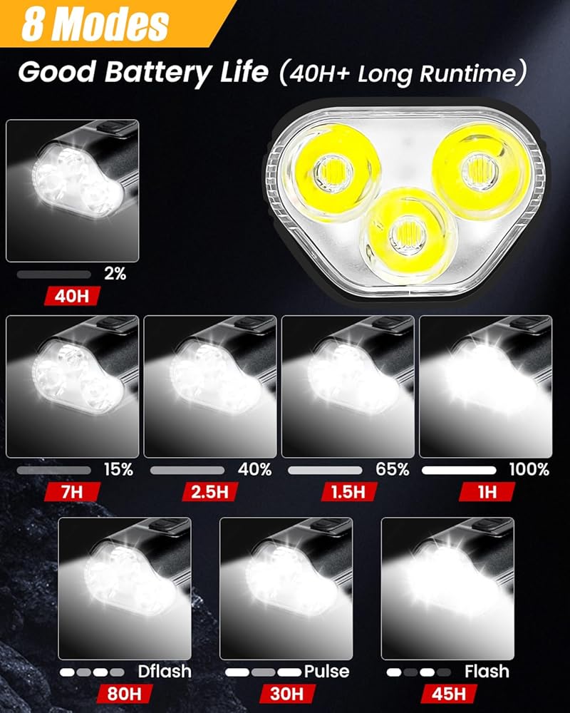 أوضاع متعددة: تتميز بـ 8 أوضاع إضاءة، مصباح الدراجة هذا مثالي للأنشطة المختلفة، من ركوب الدراجات إلى الجري الليلي والتخييم وصيد الأسماك والعمل الليلي. إنه أيضًا خيار هدية رائع. استعد لمغامرتك القادمة معنا