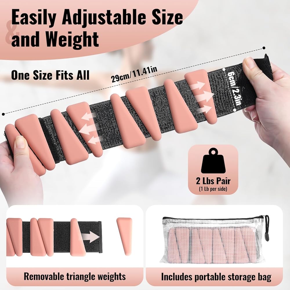 ✅【Make Your Fitness Personal】Meet our incredible wrist weights, designed just for you! With adjustable and removable weights, they cater to all fitness levels. Each set weighs 2 lbs (that's 1 lb per side, plus 0.13 lbs for each triangle weight). Customizable from 11.4 to 21.5 inches, they'll snugly fit any wrist size!