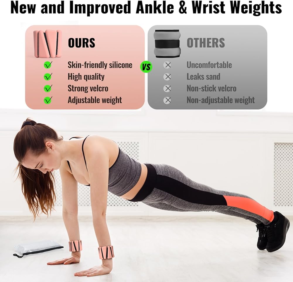 ✅【Comfort Meets Durability】Our wrist weights are crafted from soft, waterproof, and sweatproof silicone that won't slip during your workouts. Inside, robust stainless steel ensures you get your optimal workout load. With sturdy Velcro straps and a unique triangular design, they're built to stay put and keep you comfy.