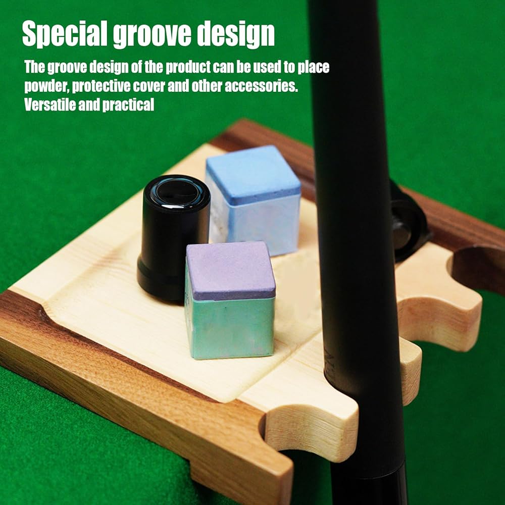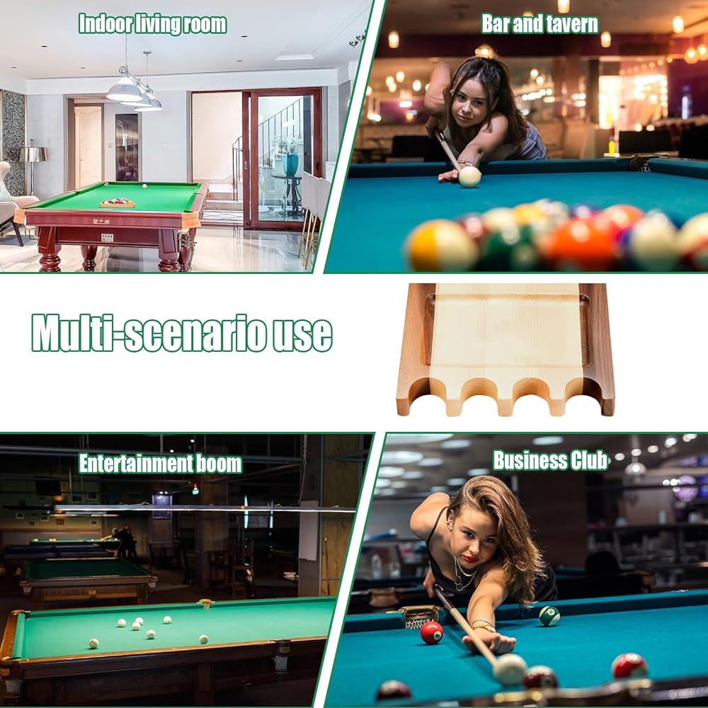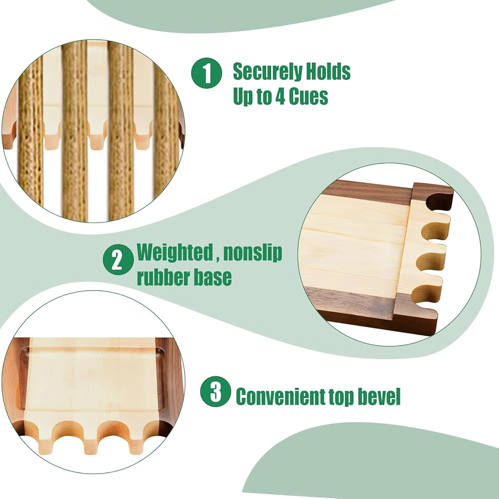 هيكل من الخشب الصلب: حامل عصا حمام السباحة مصنوع من الخشب الصلب، مما يجعله متينًا ويدوم طويلاً. يضمن التصميم المرجح بقاءه في مكانه، حتى عندما تلعب لعبة البلياردو. كما تمنع الحواف الدائرية أي ضرر يلحق بإشاراتك