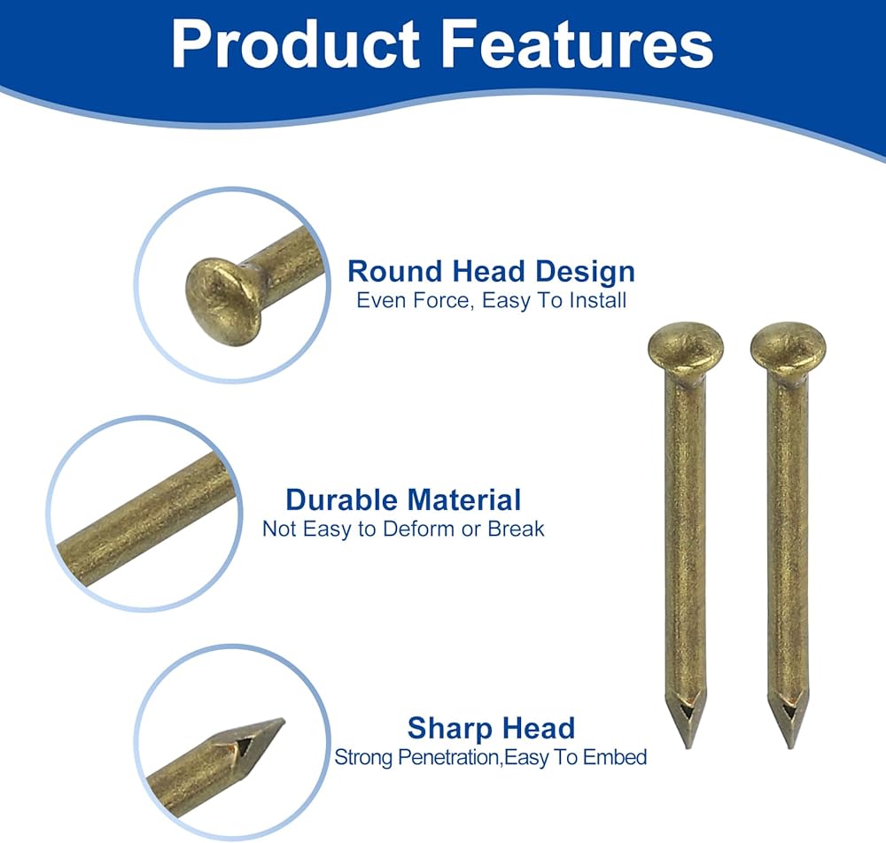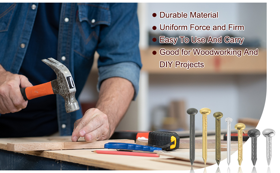 التطبيق: هذه المسامير الشائعة ذات الرأس الدائري جيدة لتجميع وإصلاح الإطارات والخزائن والديكورات الخشبية والطاولات الخشبية وصناعة الصناديق وغيرها من الأثاث الخشبي الصغير الذي يتطلب توصيلات. يمكنك اختيار الحجم المناسب لتعليق الصور وإطارات الصور والملصقات وغيرها من مشاريع DIY.