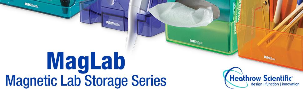 Easily organize common lab products off your benchtop with the MagLab storage system