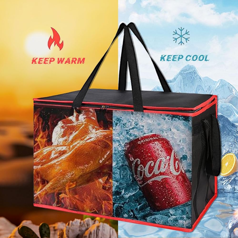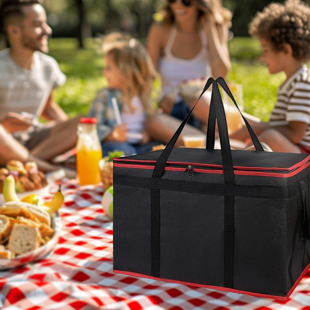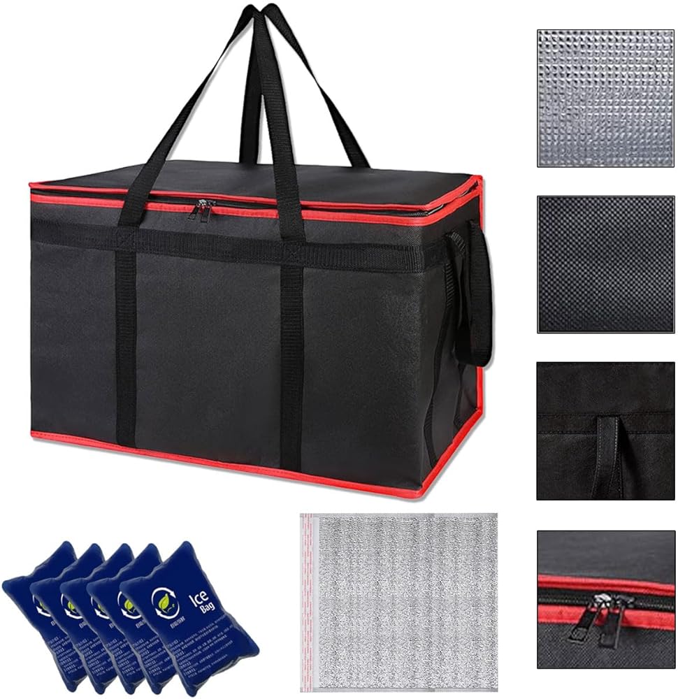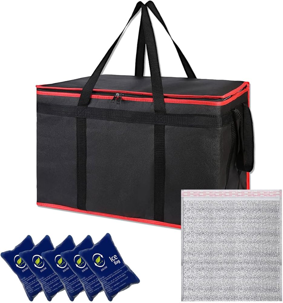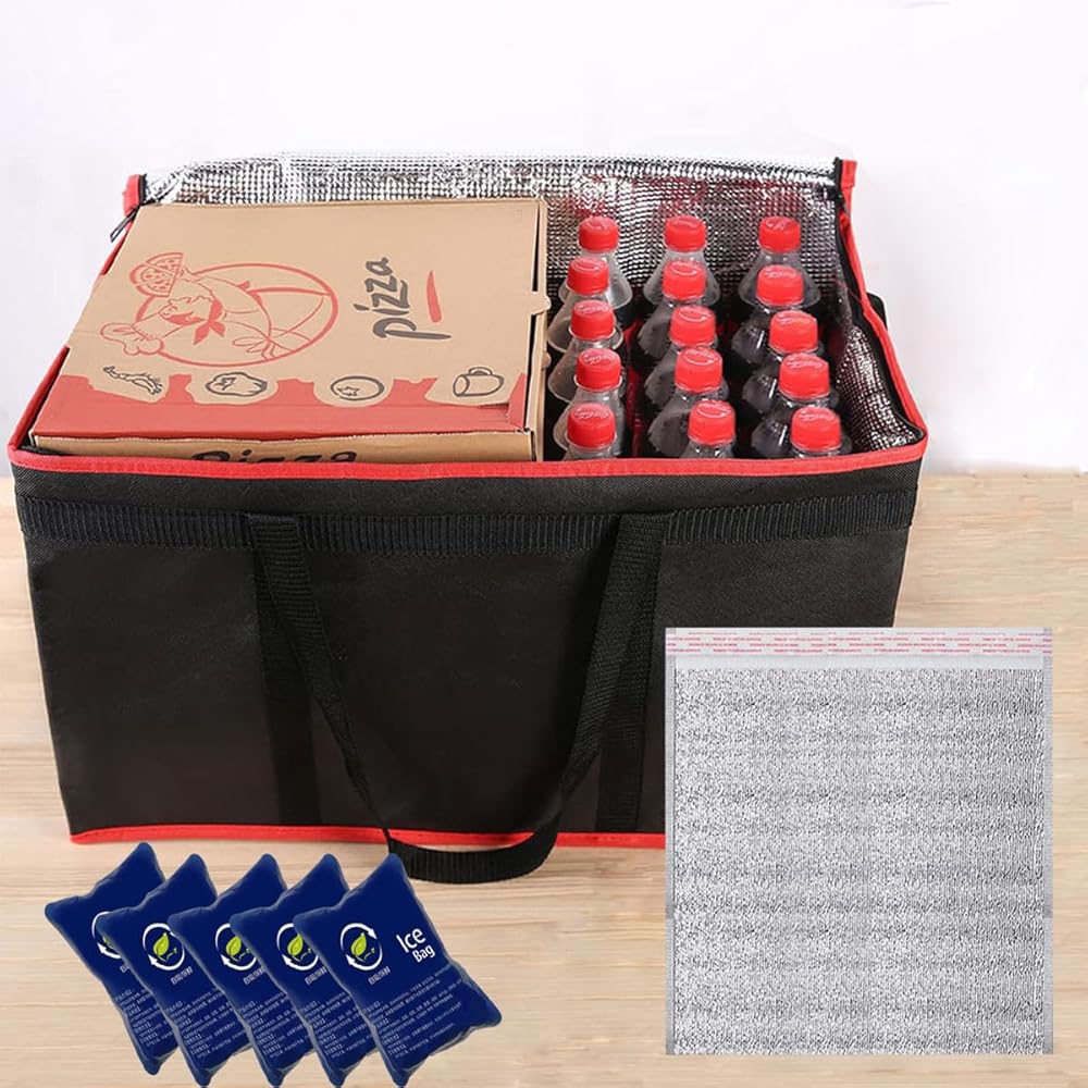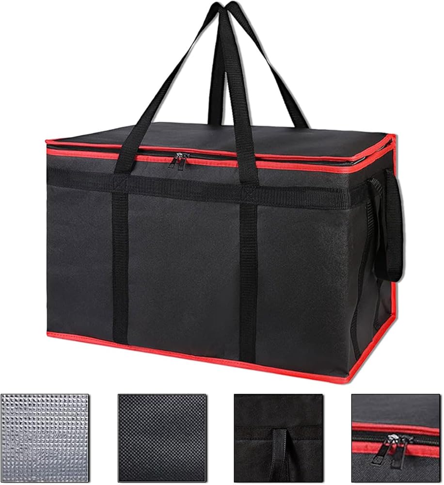 حقيبة توصيل الطعام المعزولة NKA، مقاس XXXL، حقيبة توصيل البيتزا الكبيرة، حدود حمراء سوداء