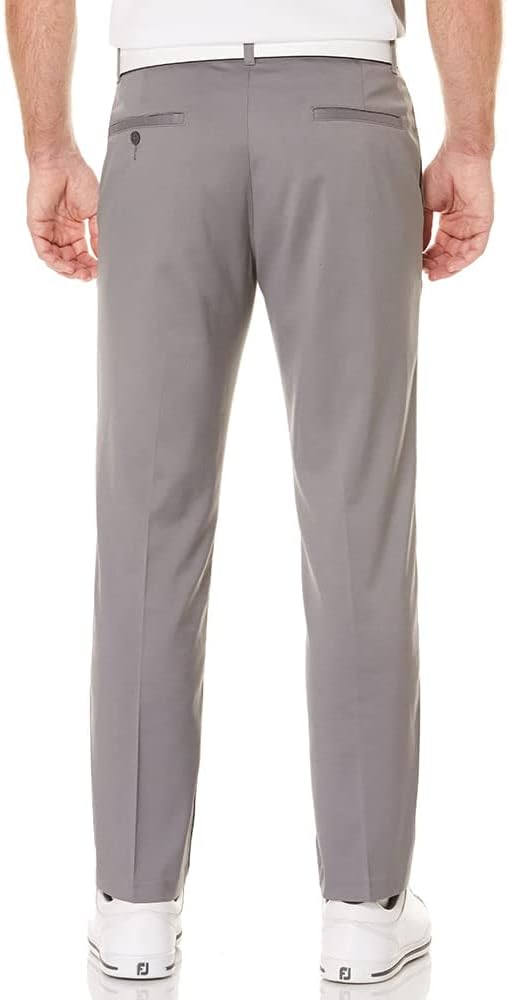 Ben Hogan Stretch Waist Pants Mechanical Stretch fabric for enhanced mobility and comfort. Flexible Front Waistband Closure for extra comfort Gripper Waistband to hold a tucked shirt in place Moisture-Wicking properties keep you cool and dry UPF 15 Protection from the sun No-Fade fabric Easy Care: Machine Washable/Tumble Dry Low 2 Front Slant Pockets/2 Button Closure Back pockets 100% polyester material Belt loops!