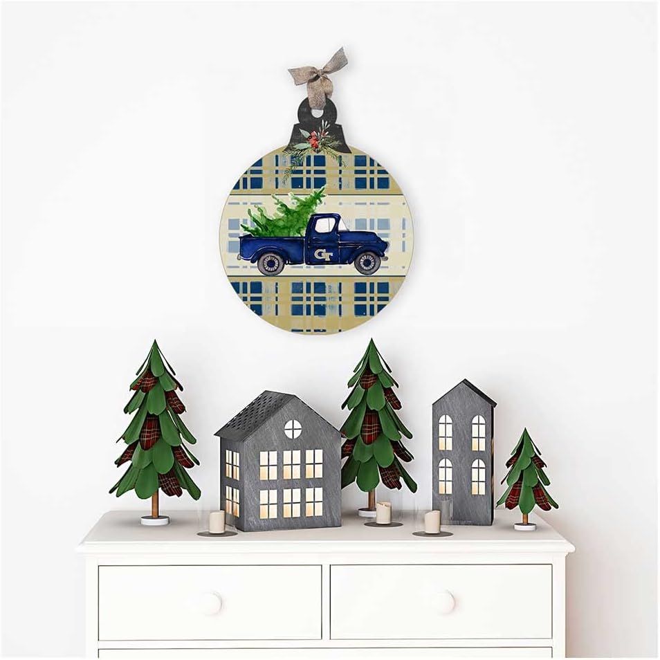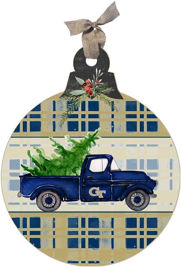 Celebrate the season and let everyone know who you are cheering for on game day with this unique Georgia Tech Yellow Jackets holiday ornament sign featuring an old truck carrying a Christmas tree set on a plaid background in the team colors. With its classic style, this festive sign is the perfect way to display your team spirit in any space. Hangs with a natural colored ribbon. MADE IN THE USA. KH Sports Fan offers a huge selection of officially licensed NCAA products, which includes Georgia Tech Yellow Jackets gifts and home decor. Our Yellow Jackets merchandise makes the perfect gift for Mother's Day, Father's Day, Christmas, Graduation, Birthday, or to celebrate any special occasion that calls for Georgia Tech memorabilia. KH Sports Fan is the perfect place to shop for Georgia Tech gifts, collectibles, and Yellow Jackets decor to spruce up your fan cave, dorm, office, and home. We also offer an amazing selection of Georgia Tech outdoor decor which is perfect for entertaining your friends and family throughout every season. Make sure to check out our festive holiday collection which includes, Georgia Tech Christmas tree ornaments, Yellow Jackets doormats, and Christmas decor.